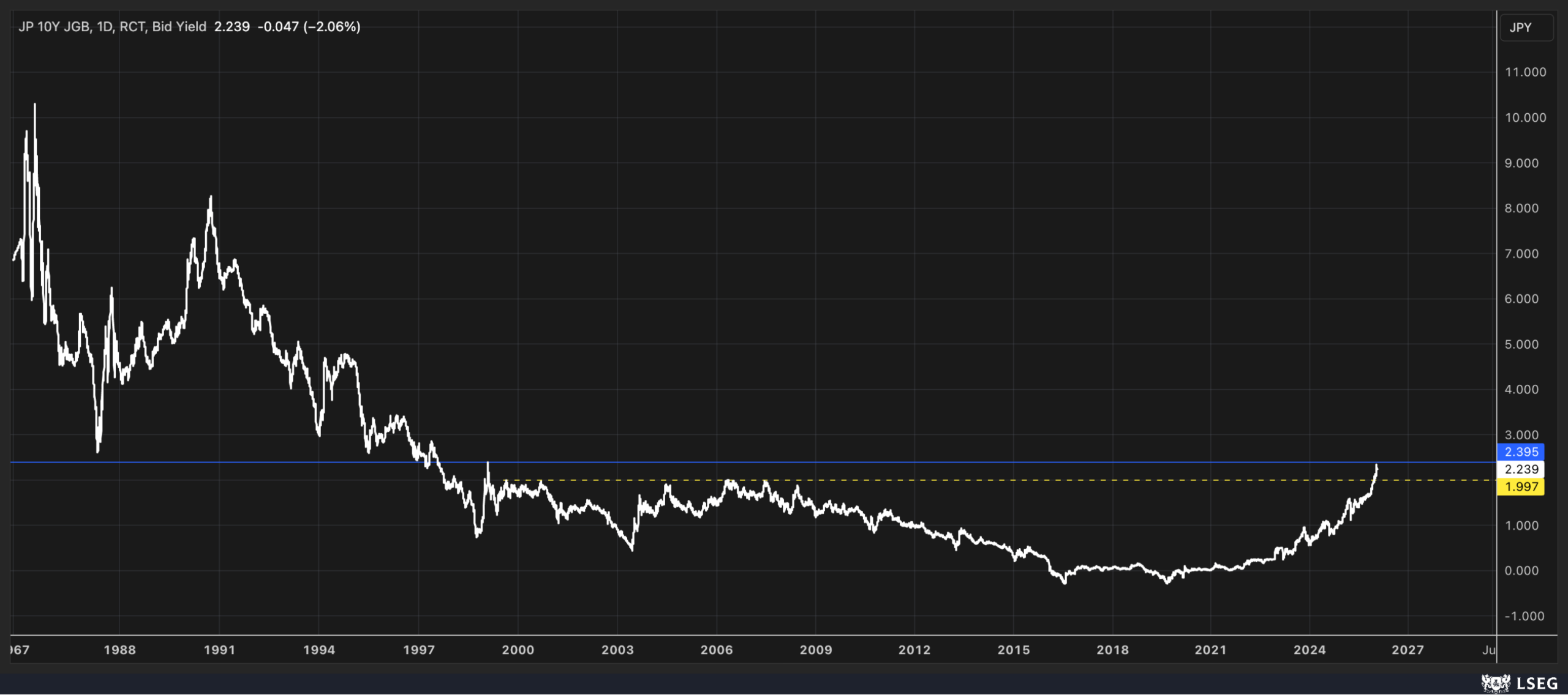 JGB (Japanese Government Bond) – Debt securities issued by the Japanese government, serving as a benchmark for Japan’s interest rates.