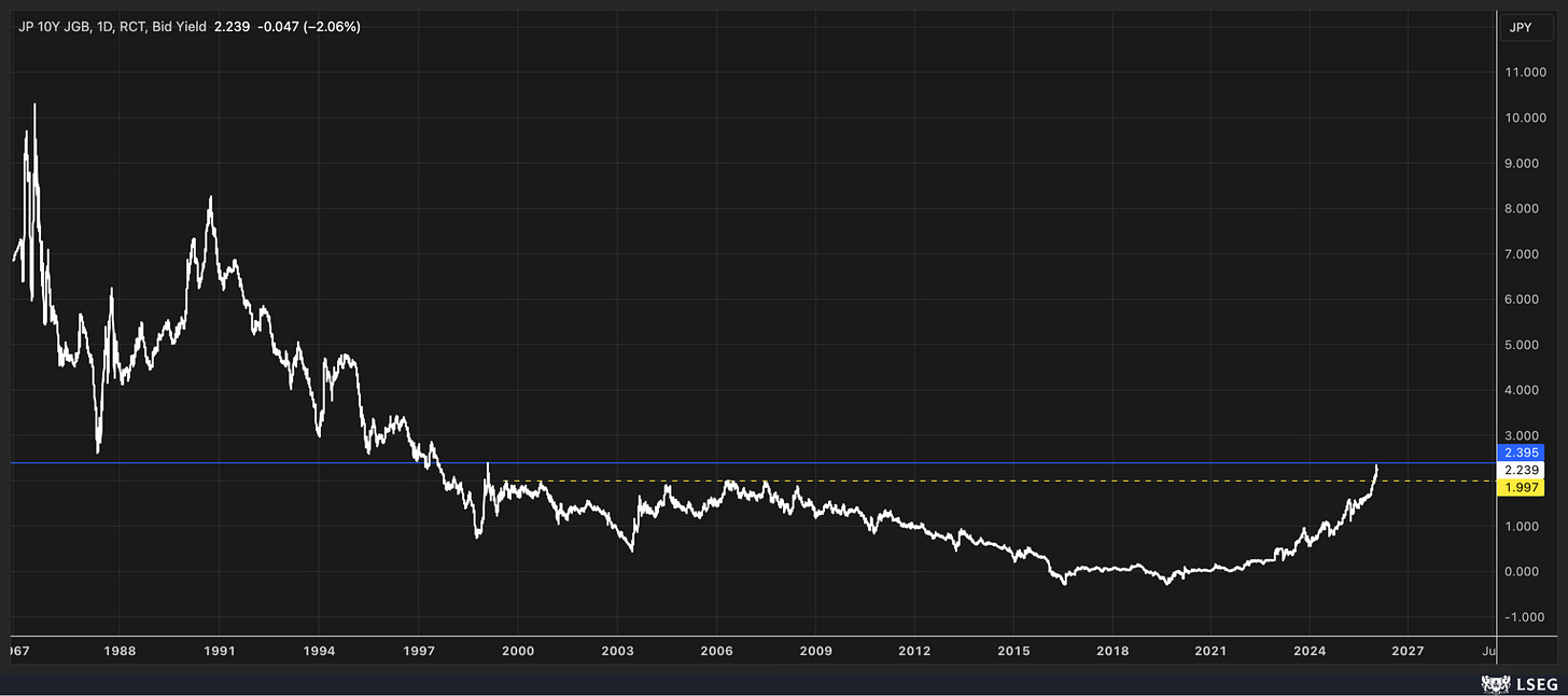 On top of that, I would think the bond market will do what the BOJ is afraid to do: push rates higher. Right now, the 10-year JGB is trading between 2% and 2.4%.