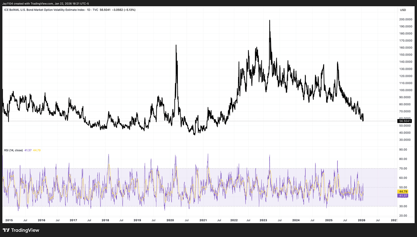 I do think the BOJ meeting results are important and could impact global markets. Again, implied volatility levels here in the US are low for both equities and bonds. Those levels did increase on Tuesday, but they came right back down over the past two days.