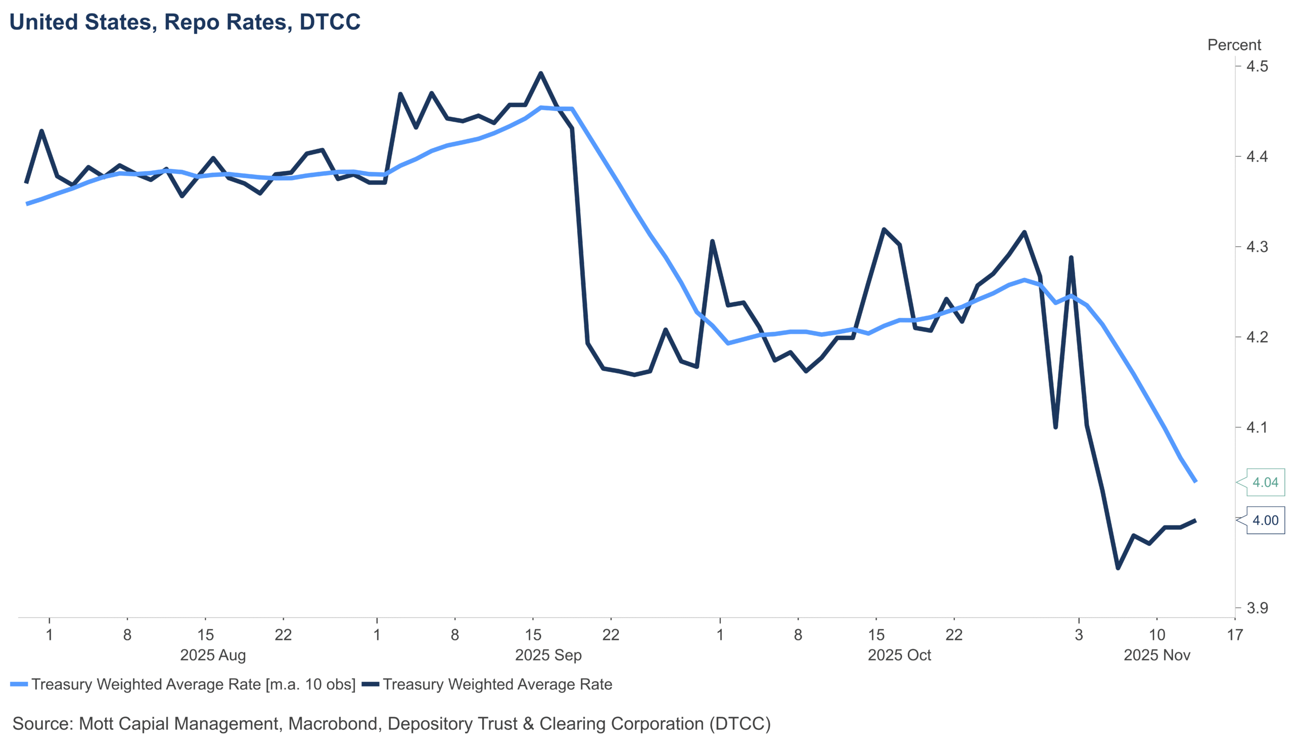 There will be another Treasury settlement tomorrow, totalling about $23 billion. That will likely create additional liquidity pressures. We already saw some of that today, with repo activity trading at elevated levels and overnight funding rates moving higher. The GC rate averaged around 4% according to DTCC. Given all of this, SOFR rates are likely to push higher on Wednesday morning.