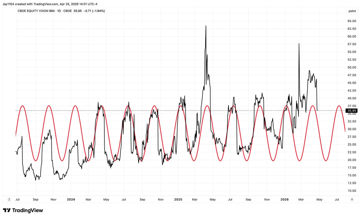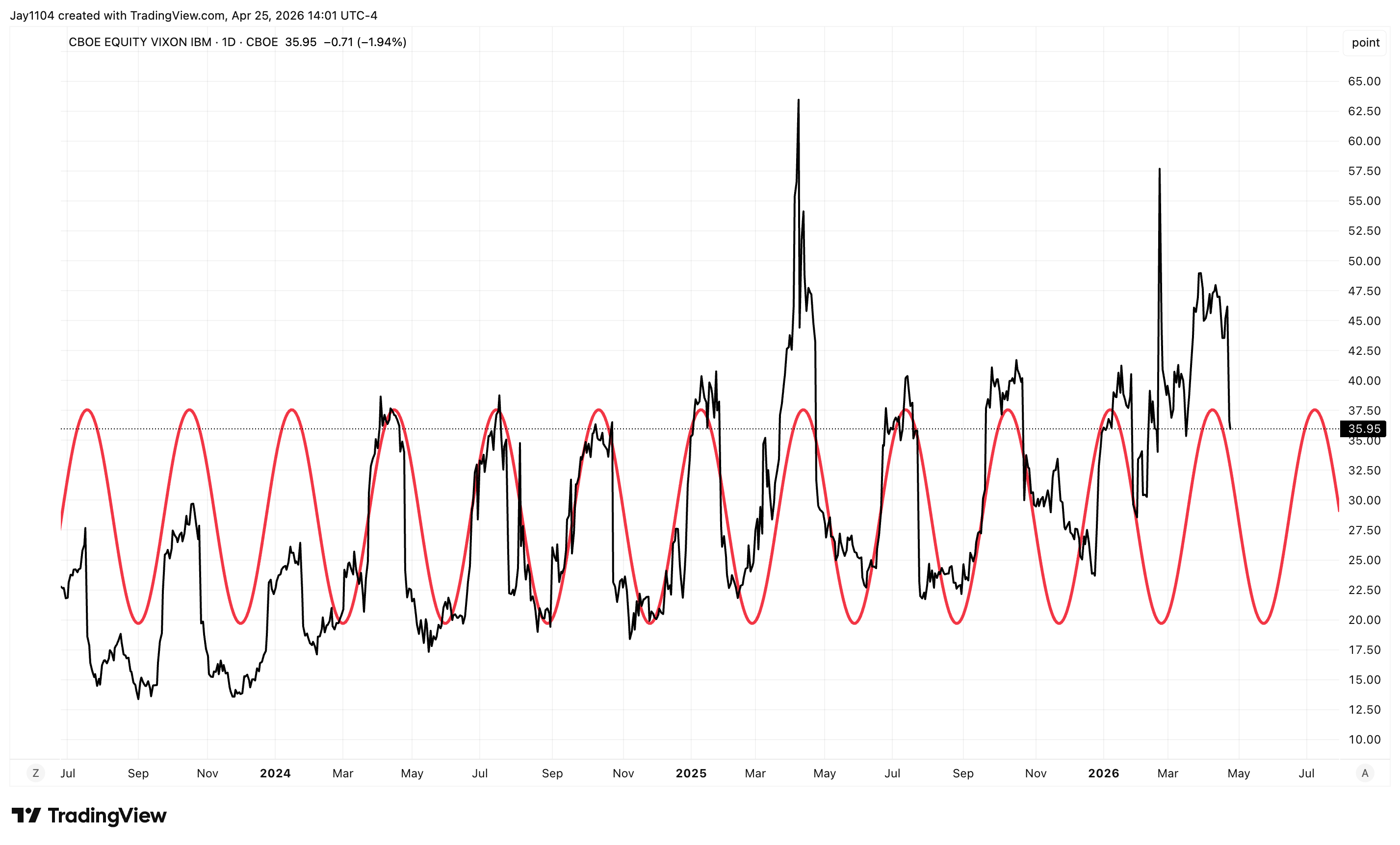 The VIX on IBM is another one. That also rose rather sharply going into earnings, and now that they’ve reported this week, it’s all the way back down.