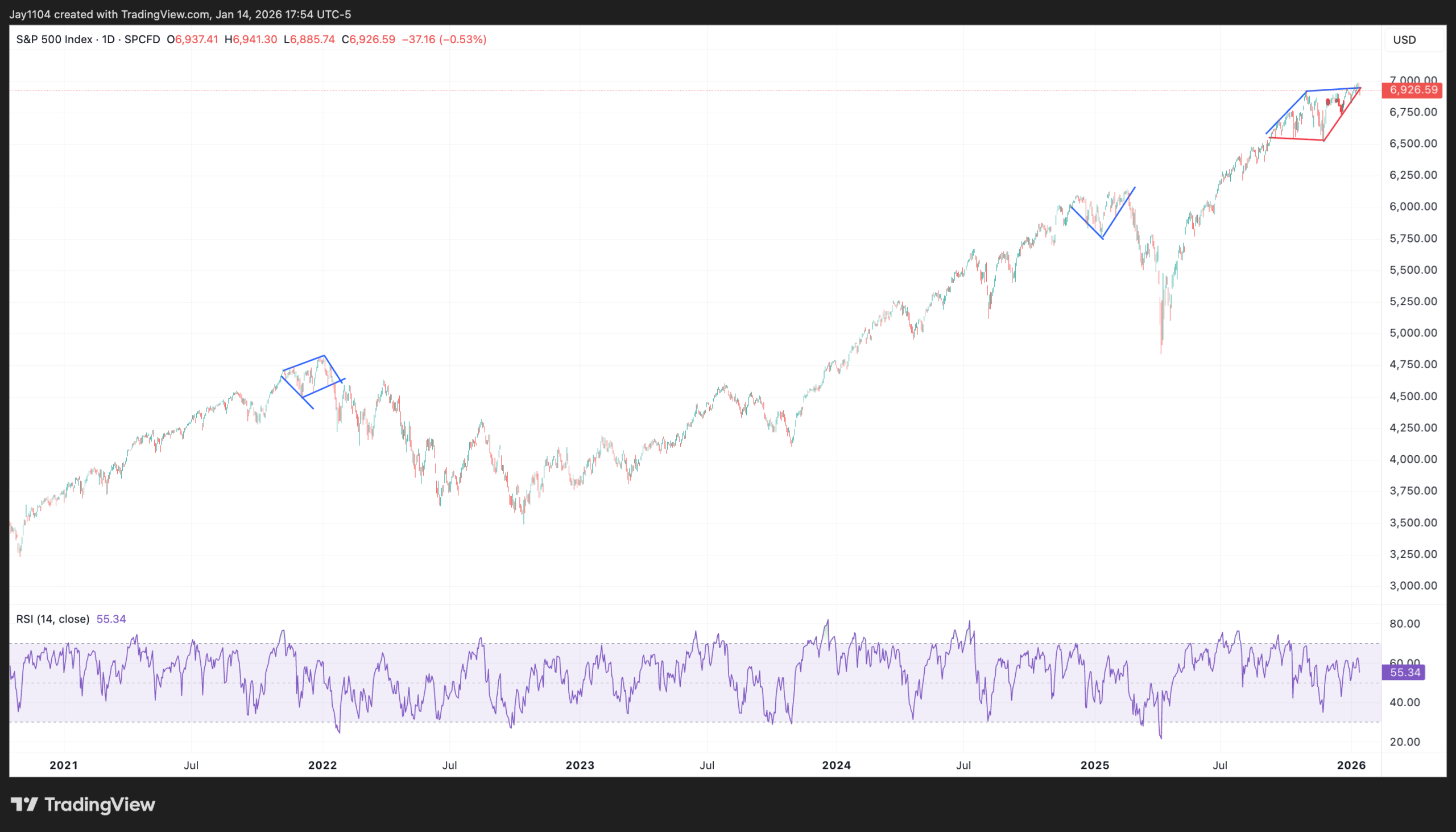 As noted previously, the setup in today’s market looks very similar to that seen at the start of 2022 and 2025. At least to me it does.