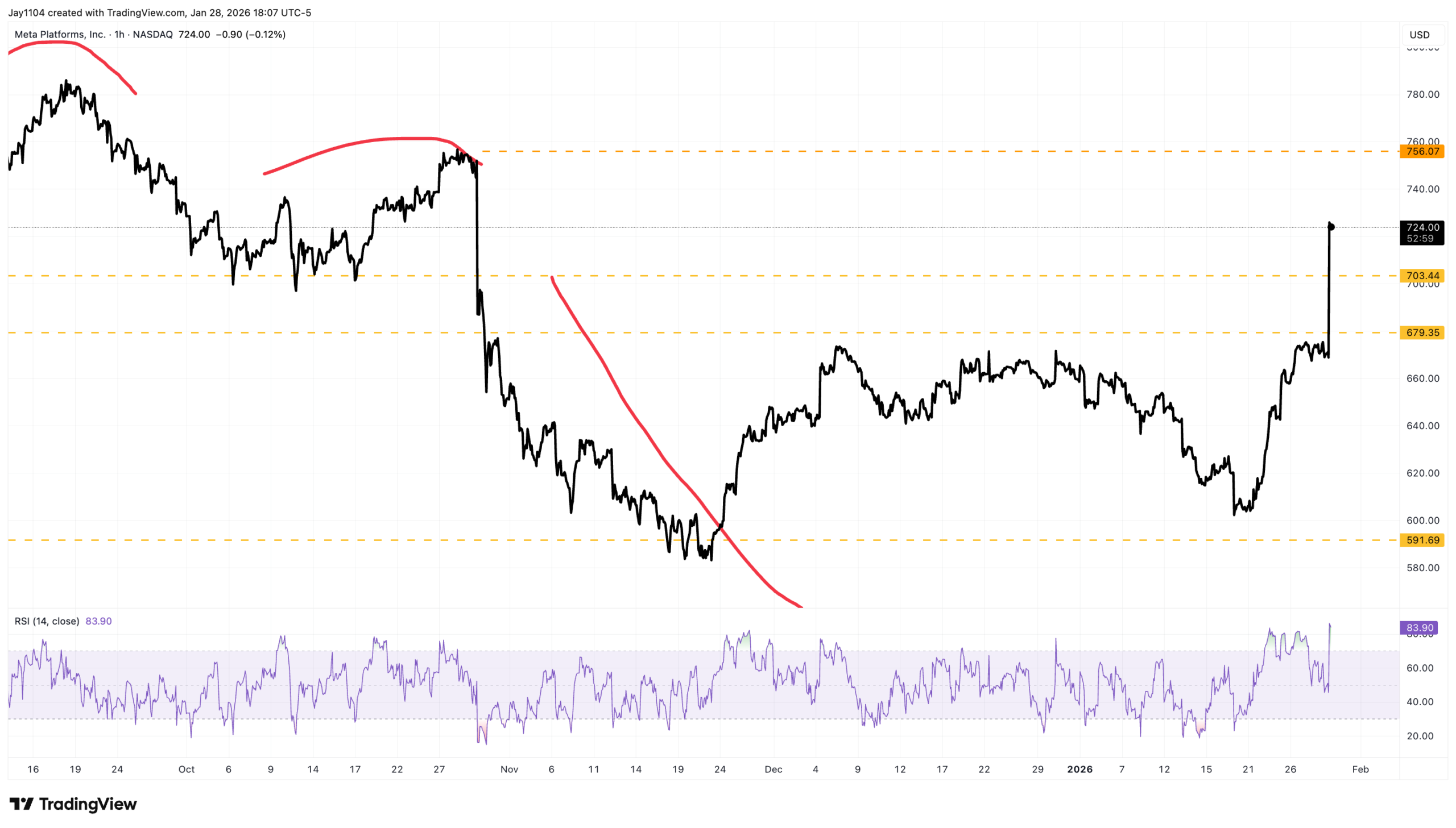 For Meta, the level that had to be cleared was $700, and at least for now the stock managed to clear that level. Revenue guidance was much stronger than expected, and on the surface, so the market is giving them a pass even though CAPEX came in higher than expected. It will be interesting to see whether the stock can stay over $700 once the market opens tomorrow.