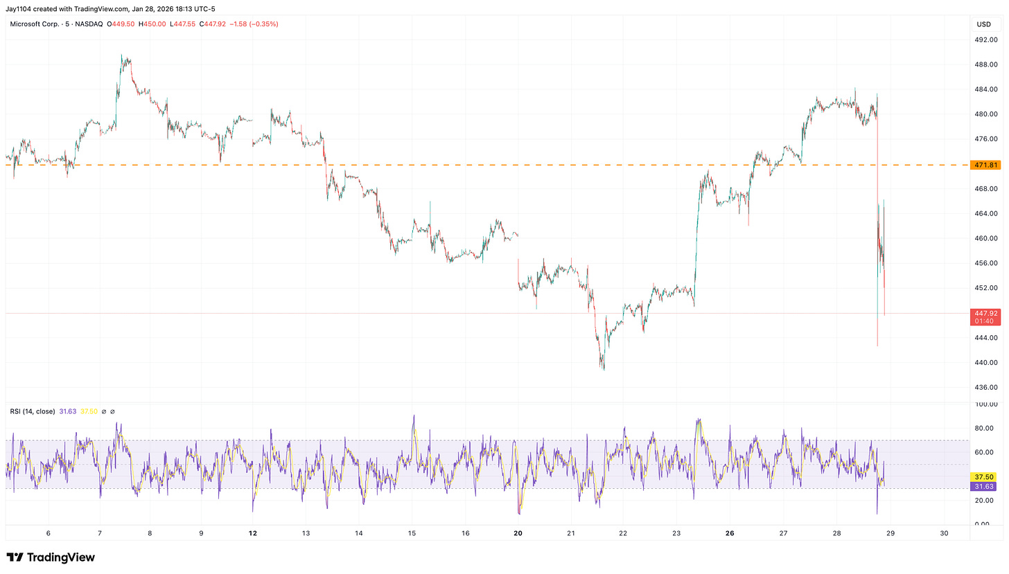 For Microsoft, that level was $500, and it could not clear it despite delivering better-than-expected results; however, Azure growth disappointed.