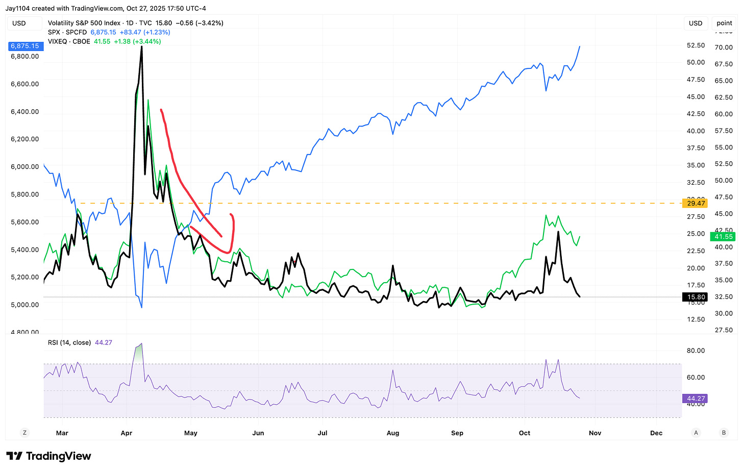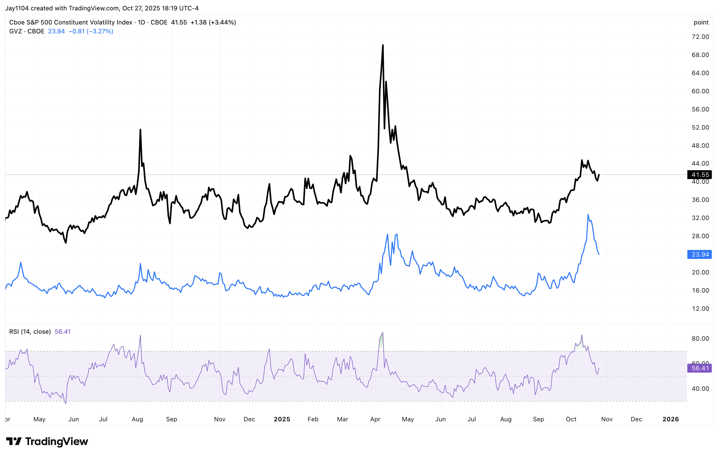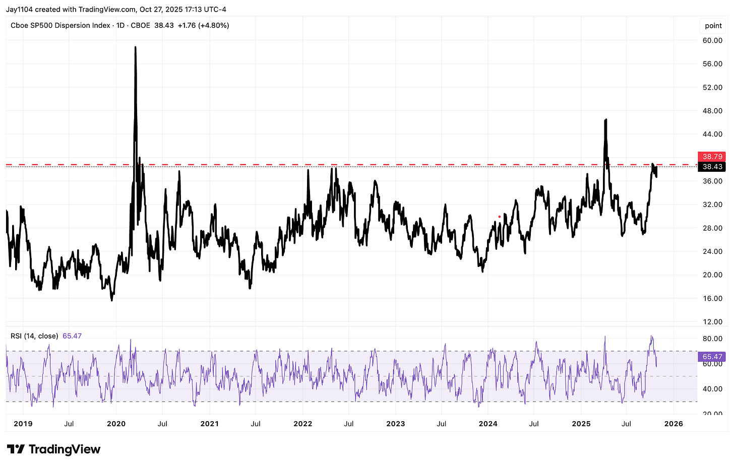 Right now, the stock market is in the final days of the dispersion trade ahead of results on Wednesday and Thursday. The Dispersion Index actually rose by nearly 5% today, reaching the same level it was at before the October 10 sell-off.