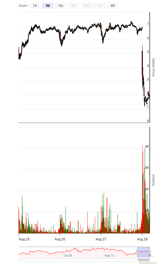 We are still in the aftermath of Nvidia, and as noted yesterday, the stock is currently trading around $180. It will be interesting to see what happens later in the day. The $180 calls that were trading for almost $7 yesterday are now worth only about $2. That is because implied volatility has fallen from roughly 110% yesterday to just 45% today.