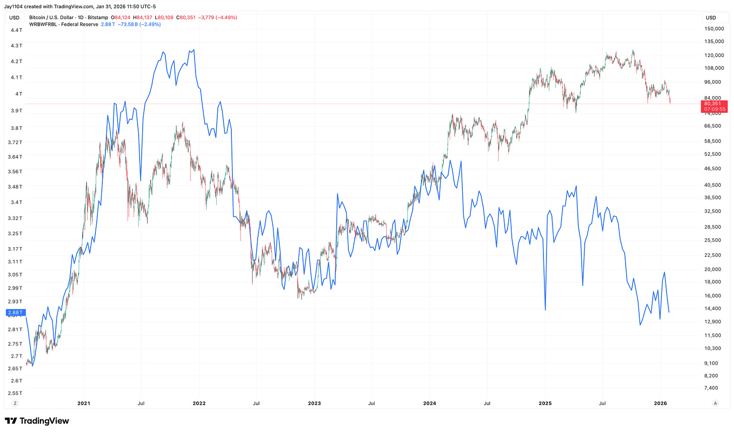 If reserves continue to decline, it wouldn’t surprise me to see broader risk assets, including the Nasdaq 100, weaken further. That’s consistent with recent history.