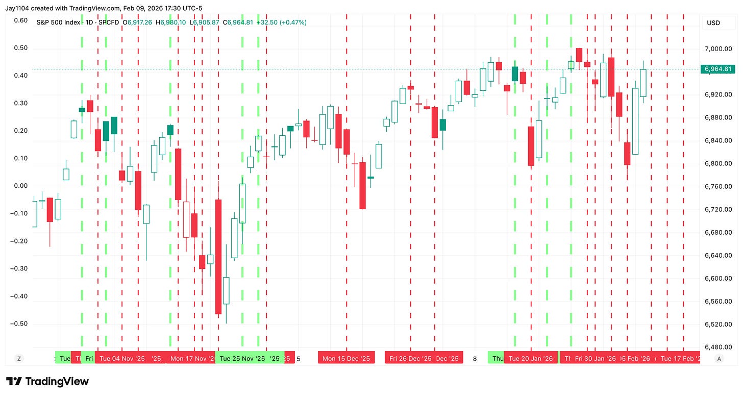 I counted 24 settlements since October 28, during which T-bills drained liquidity. In December, T-bill issuance was reduced, thereby adding liquidity to the market. On 8 of those settlement dates, the S&P 500 was higher; on 16 days, it was down.