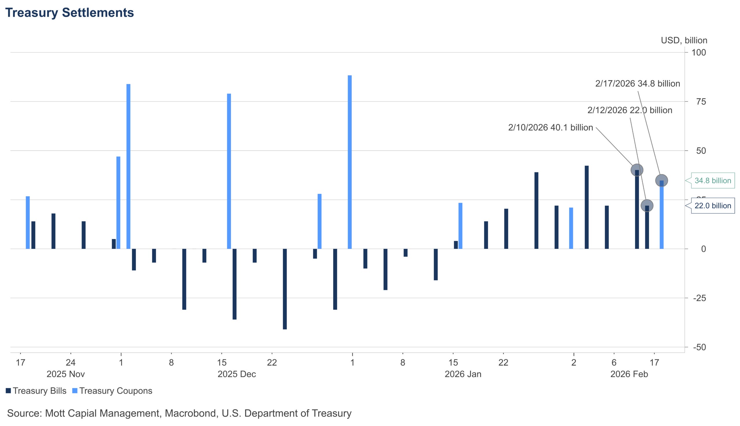 Tomorrow, there will be a settlement of about $40 billion in T-bills, followed by another $22 billion on Thursday.
