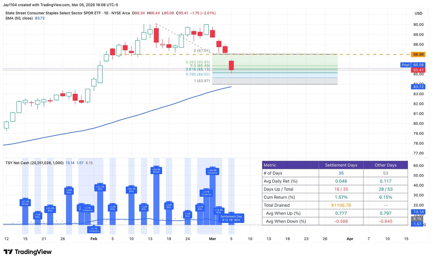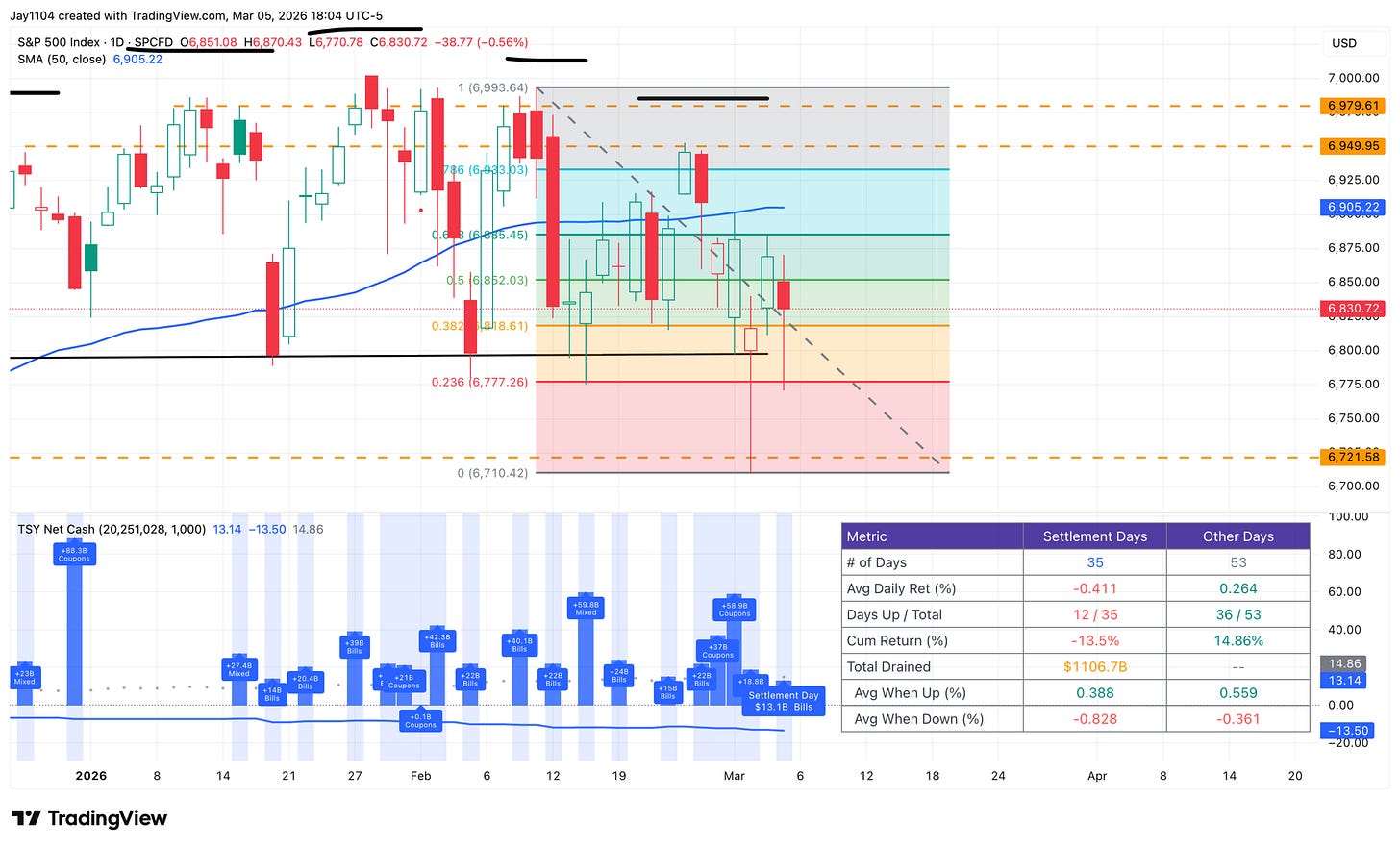 It was another active Treasury settlement day, with the S&P 500 finishing lower by 56 bps. That now means the S&P 500 has finished higher in just 12 of the last 35 settlement days. Bitcoin continued its pattern of falling on settlement dates as well. At least today, however, software and technology names caught a break.