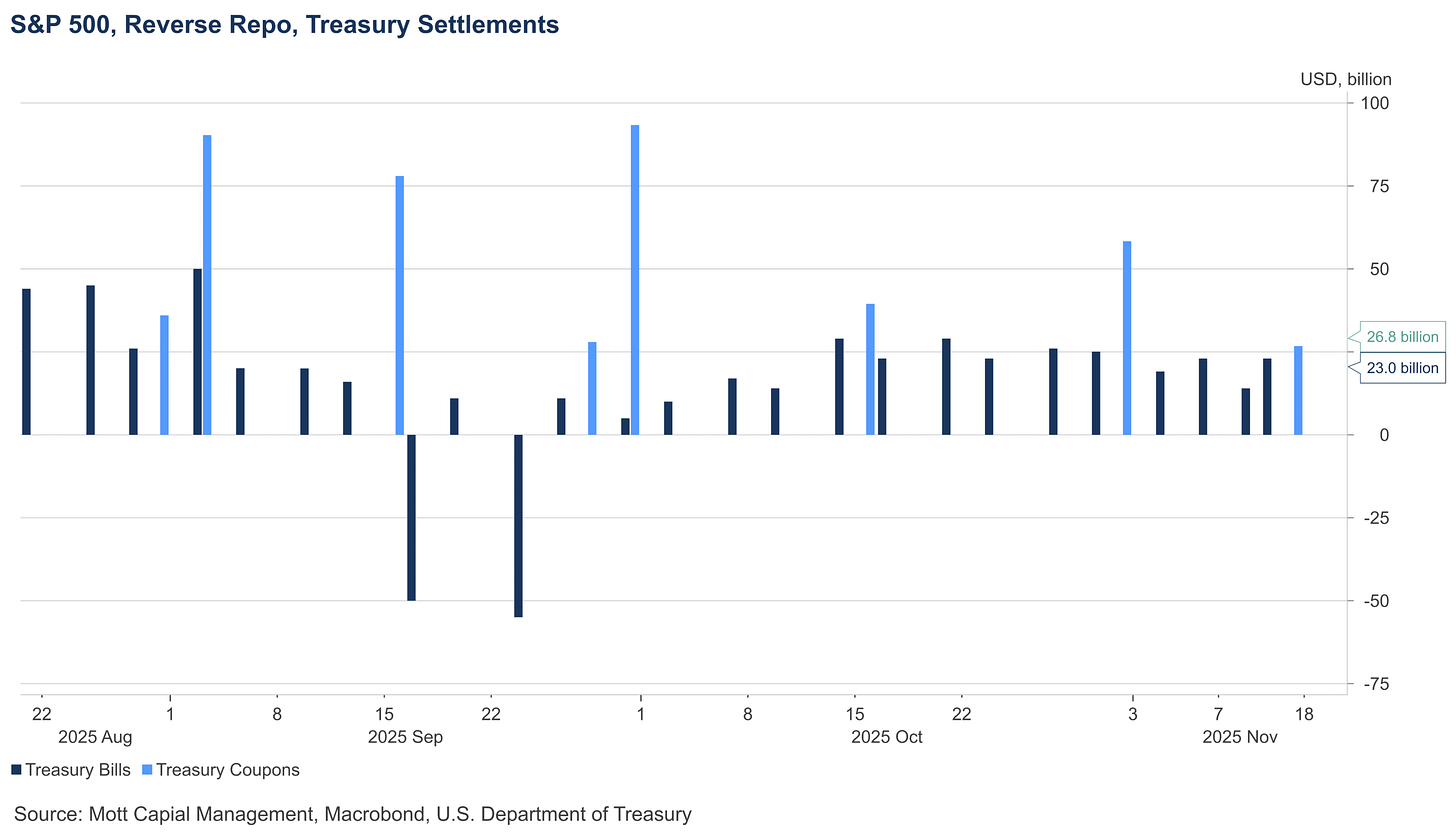 That said, Wednesday and Thursday will be Treasury settlement dates, with $14 billion and $23 billion settling, respectively. That should bring some of those overnight funding pressures we have witnessed in recent weeks. Although I doubt it will be nearly as bad as what was seen at the end of October.