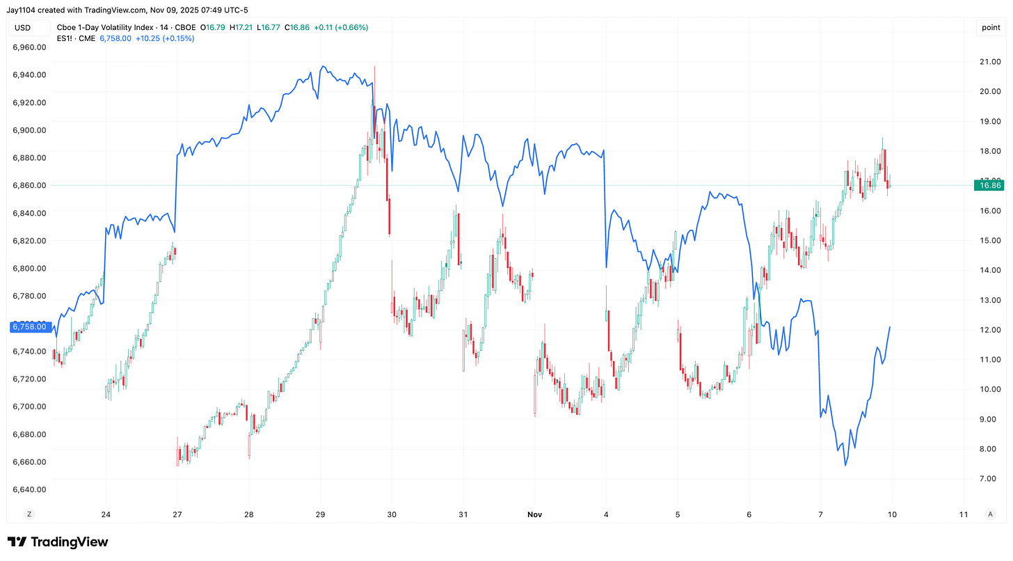 VIX 1-Day – A version of the VIX that measures expected volatility over a single trading day rather than the standard 30-day period.