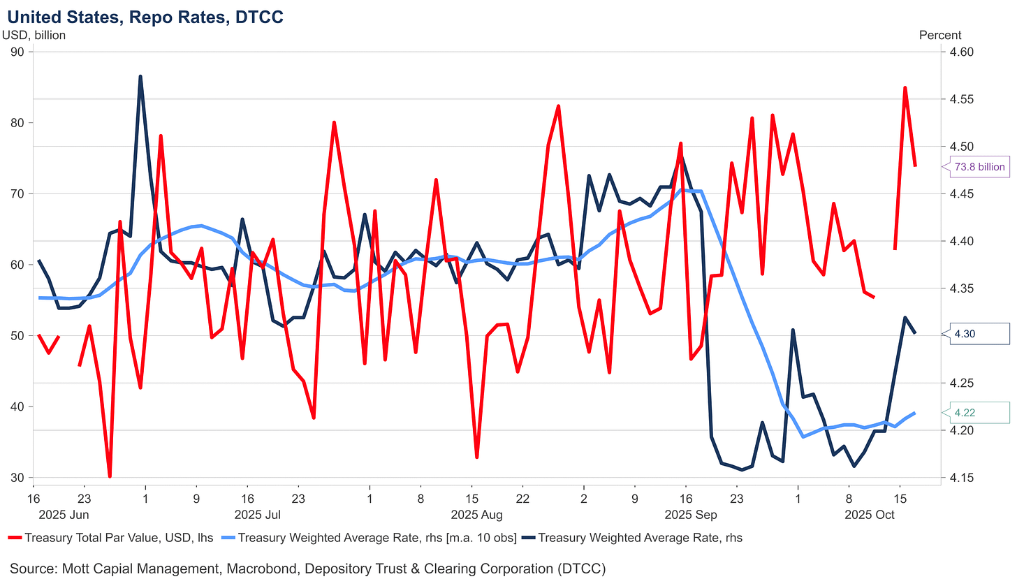 The standing repo facility rose to over $8 billion today as well, suggesting that funding stress, appear to be increasing.