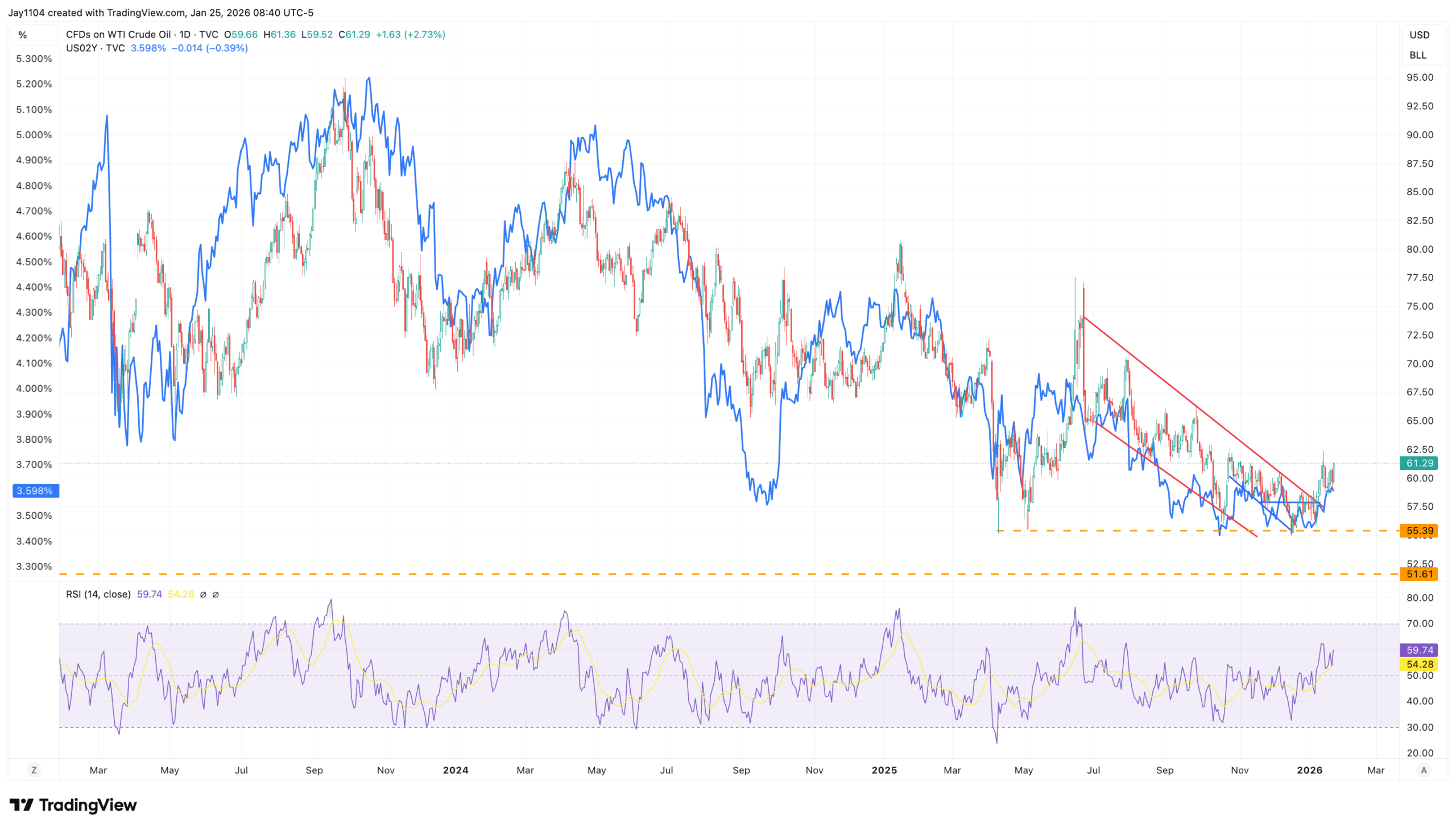 As a result, the potential for the 2-year yield breaking out and moving higher seems real, with resistance at 3.62%. What seems to stand in the way is a 2-year potentially rising back to 4%. It certainly seems possible, and technically speaking, after the 2-year has made multiple bottoms in recent months and the RSI has started to trend higher.