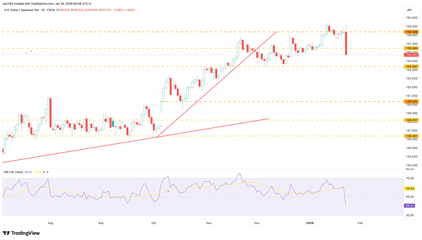 The BOJ took the “kick the can down the road” path again, opting not to raise rates and, in my view, not providing a clear policy timeline. The only reason the Yen strengthened on Friday was rumors of a “rate check“ by the NY Fed on behalf of the US Treasury. This is basically a signal that an intervention could be on the way. Maybe the plan is to try to hold things together until after the snap election in February. It is not clear to me, but it will be interesting to see how things trade once Japan opens again on Monday.
