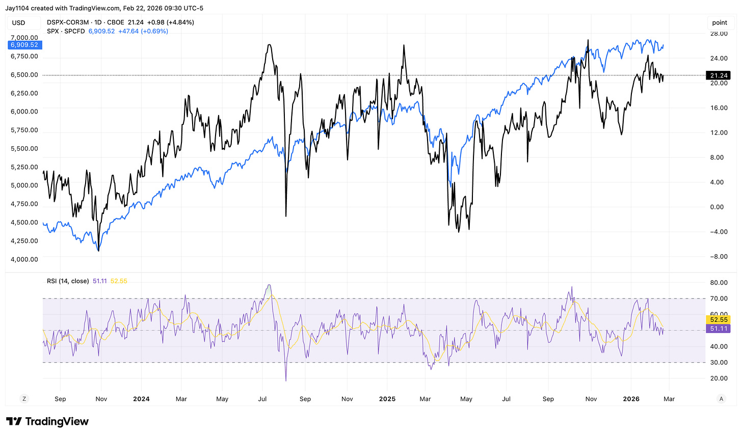 As dispersion fades, implied correlations are likely to rise. When correlations move higher after a period of elevated dispersion, the relative-value spread tends to narrow, and index volatility dynamics shift. In that environment, the S&P 500 can become more vulnerable, particularly if the prior rotation that supported the index begins to unwind.
