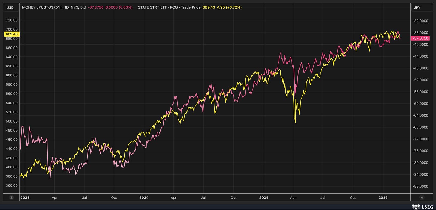 On top of that, cross-currency basis spreads have moved modestly this past week. I tend to view the JPY 5-year cross-currency basis as a useful proxy for dollar funding conditions and broader liquidity flows. While the move has not been dramatic, it has shifted in a direction consistent with tighter funding over the past week. That does not mean the trend will persist, but it is worth monitoring.