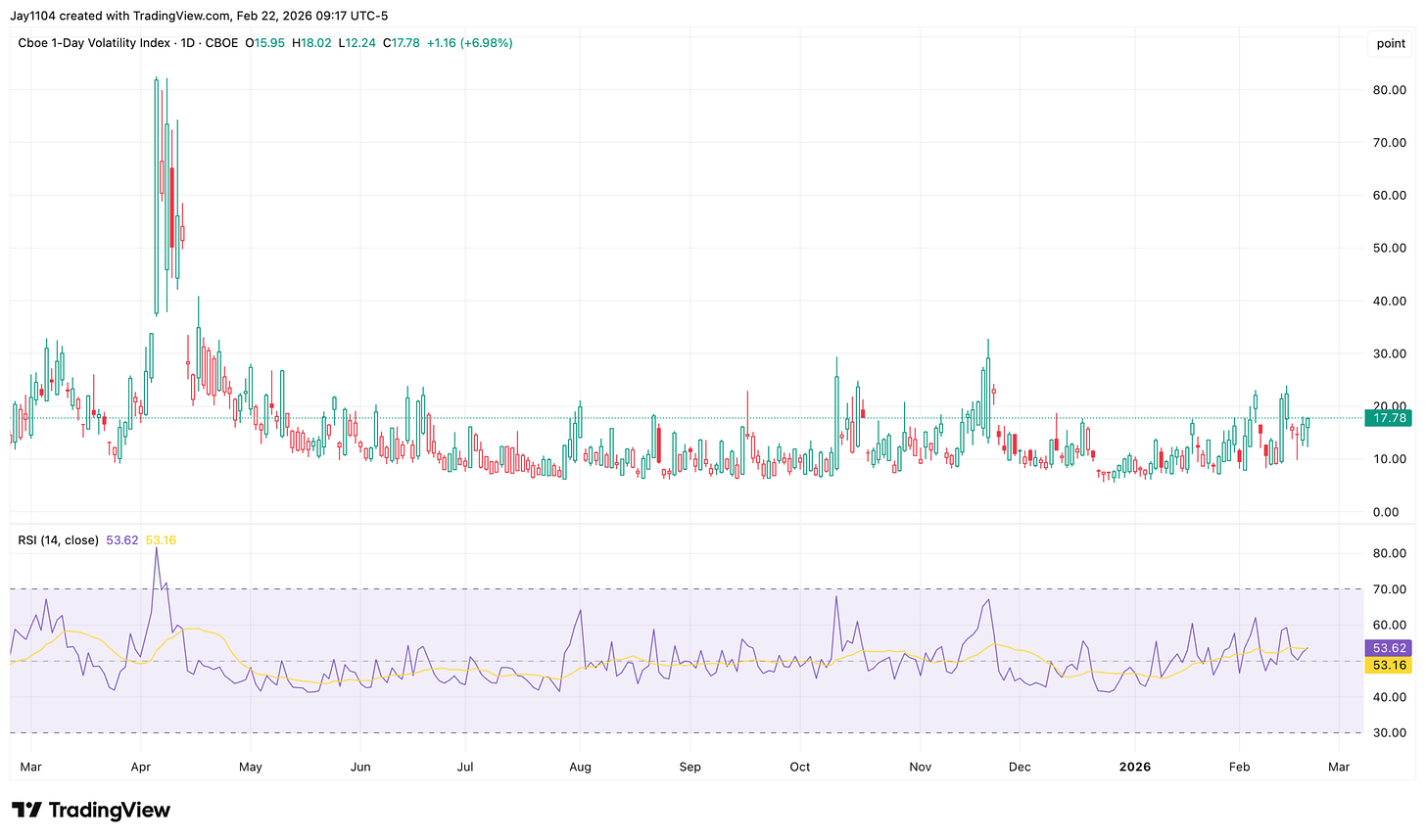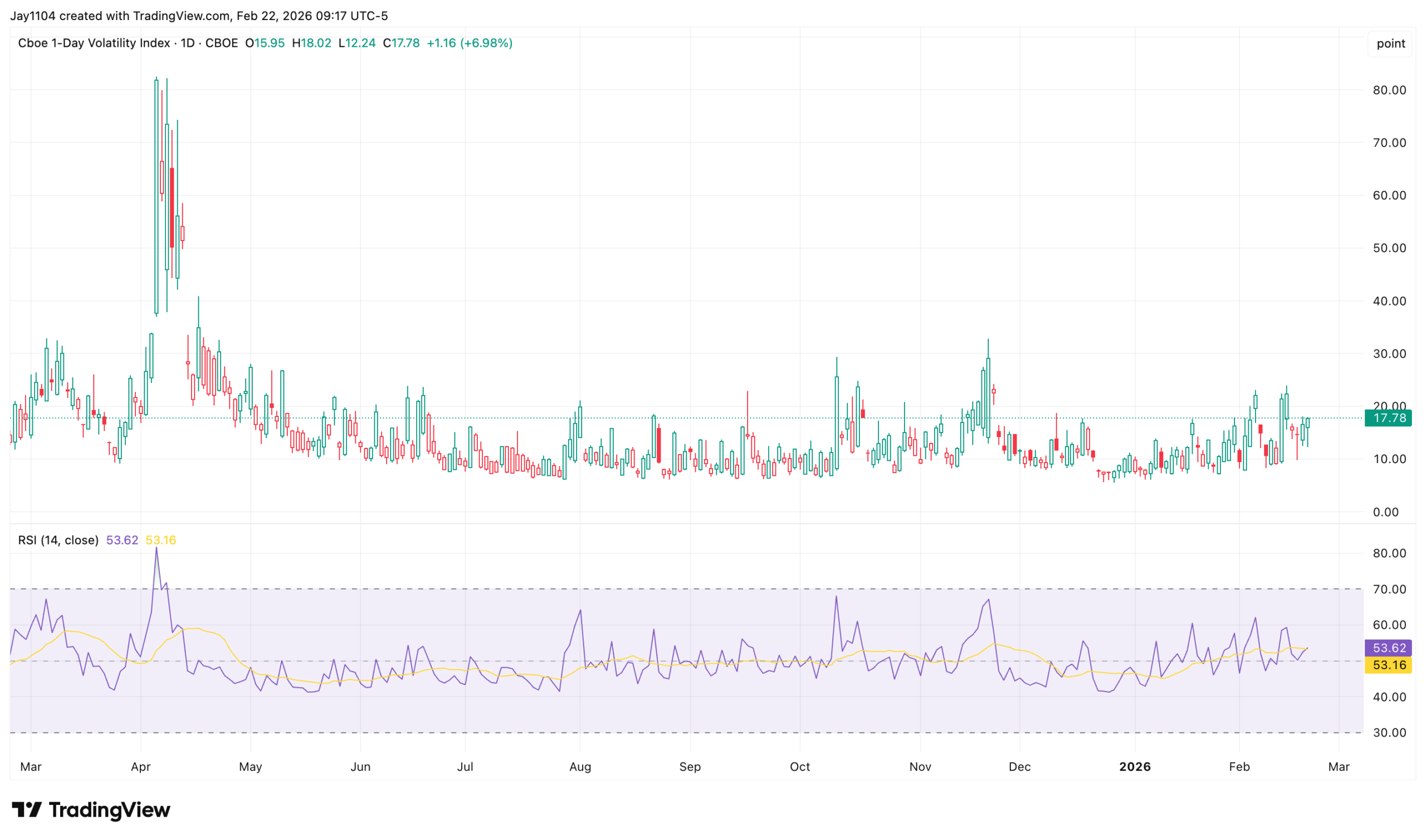 Additionally, implied volatility on the VIX 1-Day typically rises into Nvidia’s earnings release, reflecting concentrated single-name and index event risk. If that pattern holds, there is a reasonable chance the VIX 1-Day trades above 20 by Wednesday afternoon.