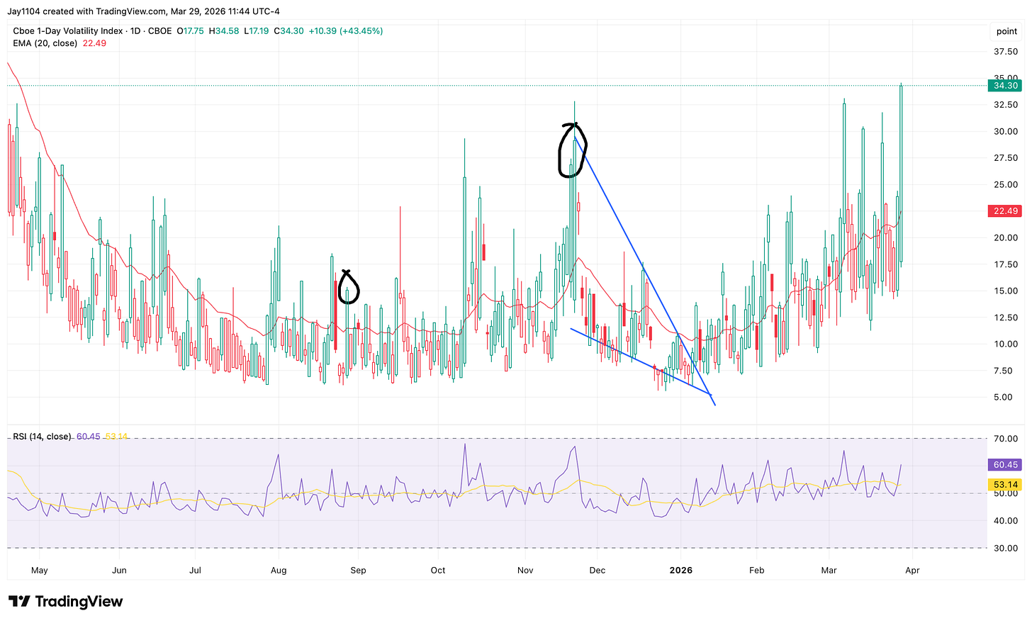 The biggest risk, of course, is how high the VIX 1-day finished on Friday, closing above 34—an extremely elevated level—which could come down sharply as soon as the market opens on Monday. It certainly appears high enough to push equity prices higher at the start of the week, similar to what we have seen over the past few weeks. The typical early-week volatility crush remains a risk.