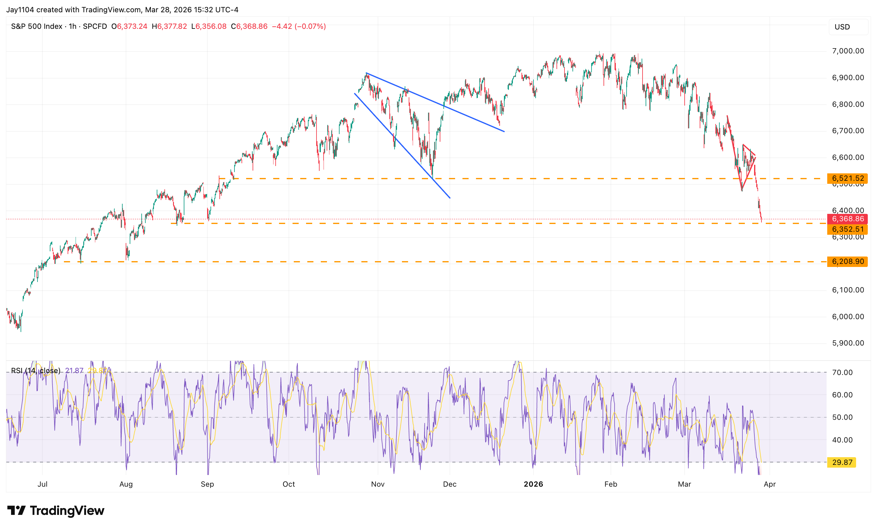 Now we’re sitting around 6,350, which isn’t a super important level, and it suggests there could still be some further downside.