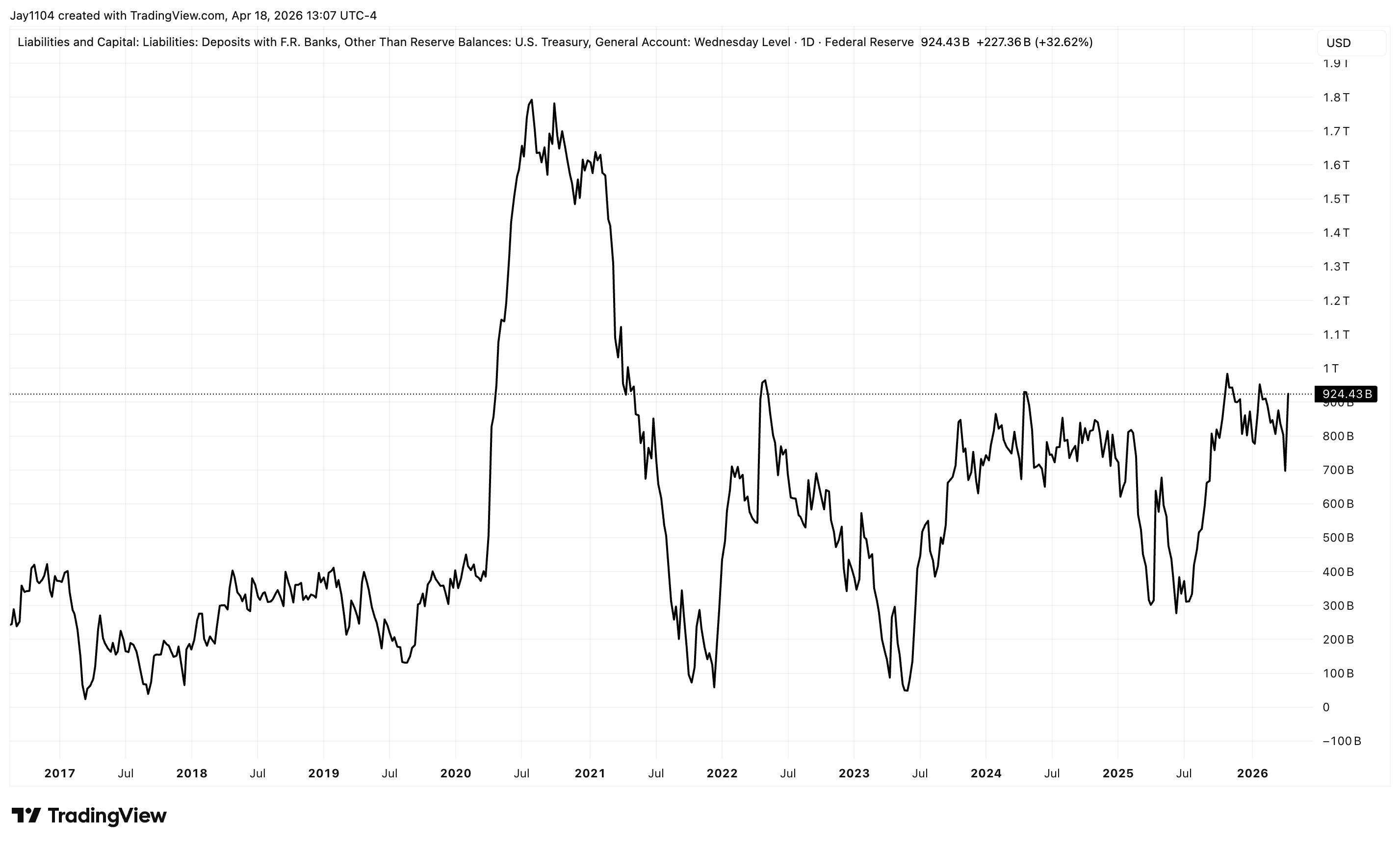 Liquidity — TGA drain was a tailwind last 2-3 weeks; reversing now.