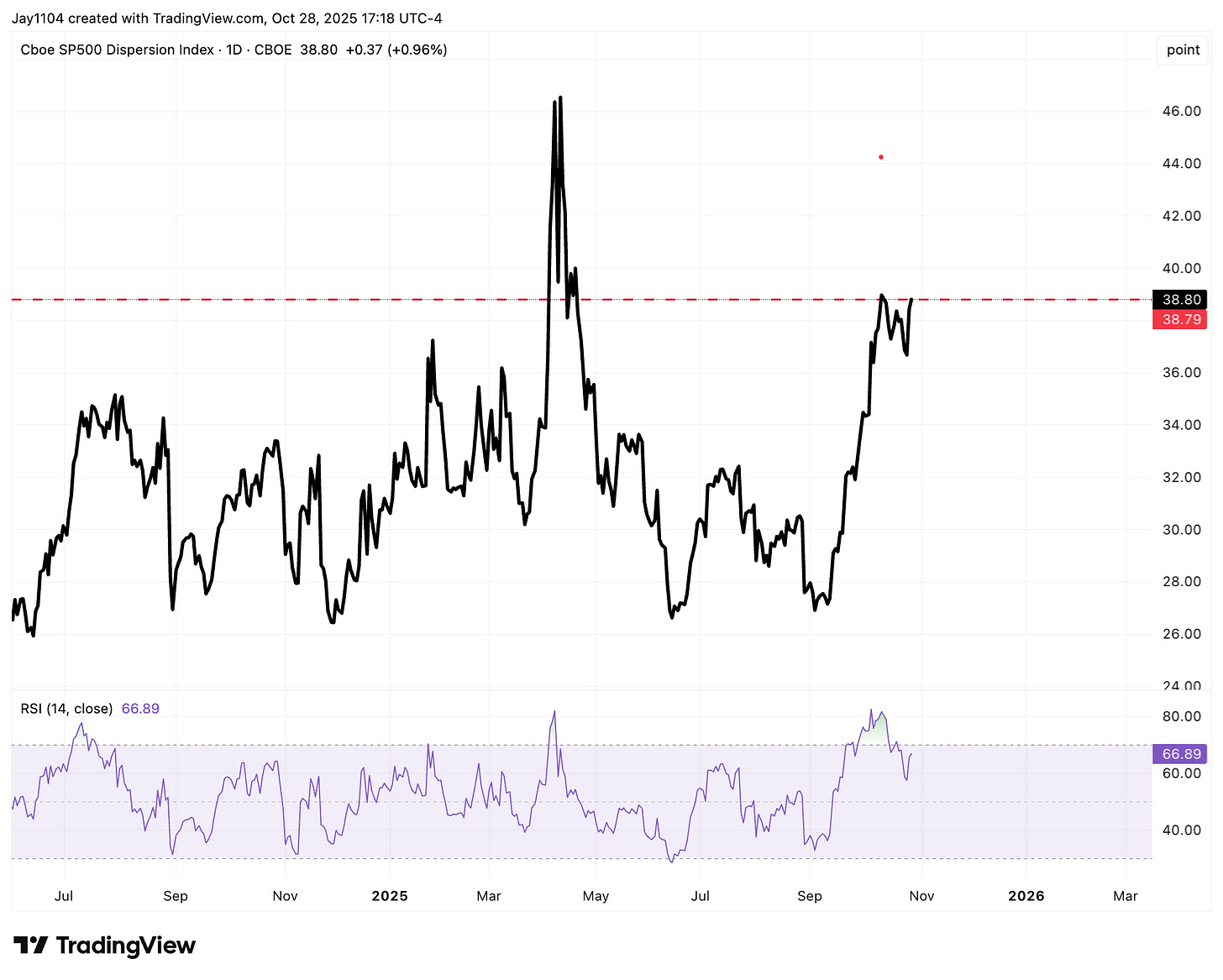 This pushed the S&P 500 Dispersion Index to 38.8, taking it back to its level before the October 10 sell-off and near its recent highs.