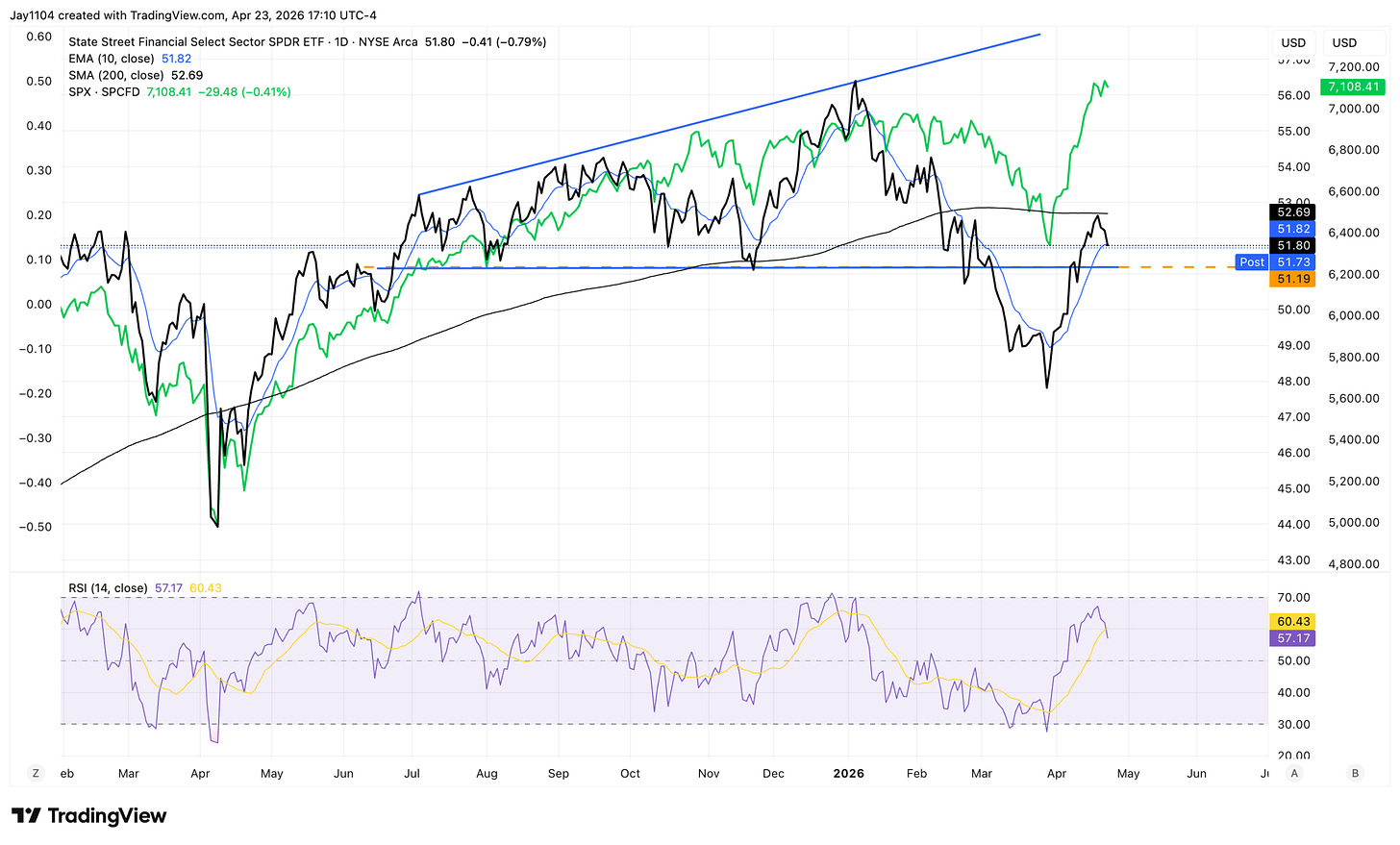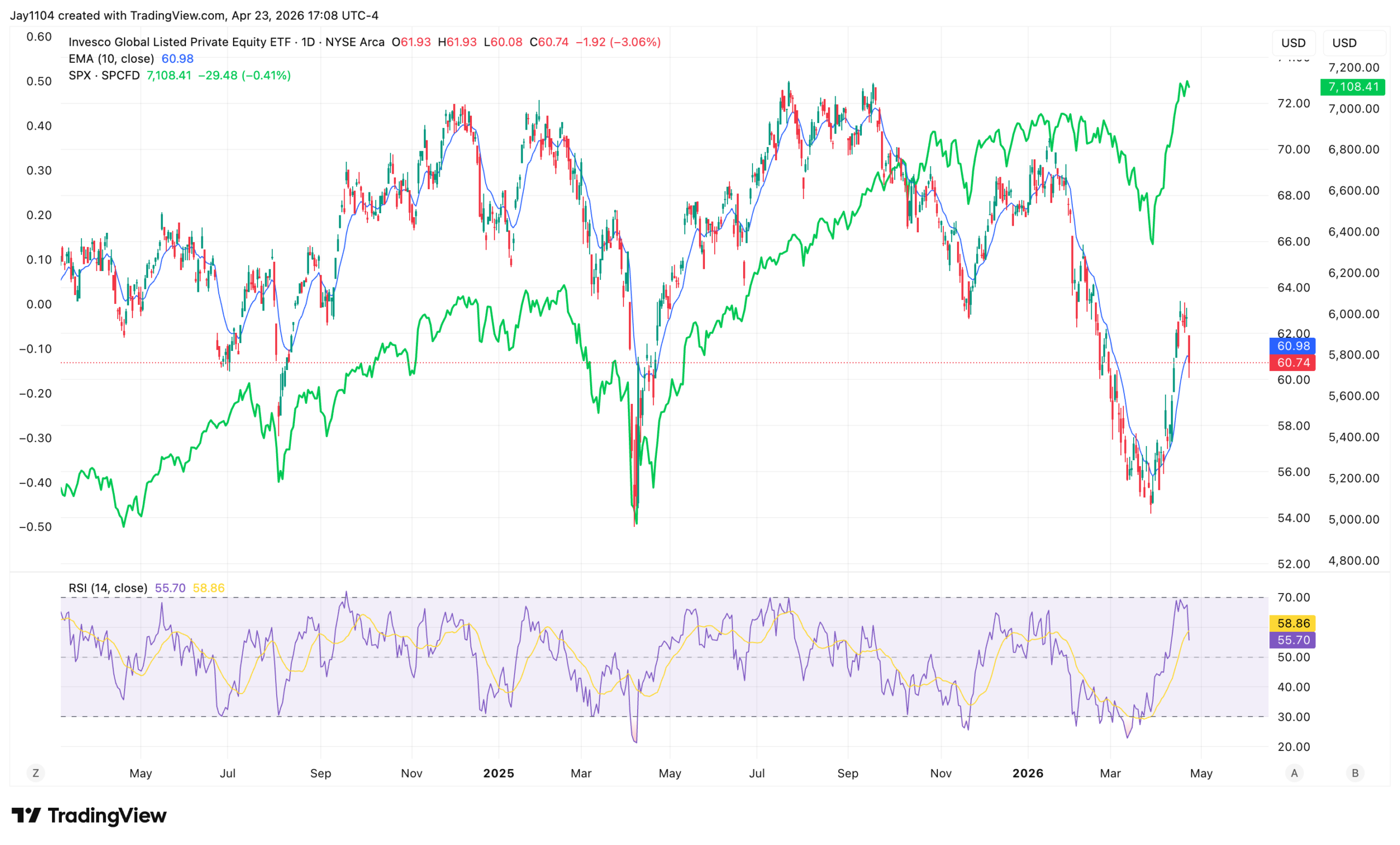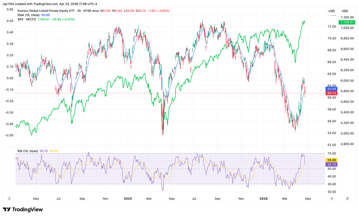 That showed up today in the PSP, the Private Equity ETF, which fell by more than 3%. We know PSP tends to be sensitive to liquidity changes, and the S&P 500 often lags moves in that sector.