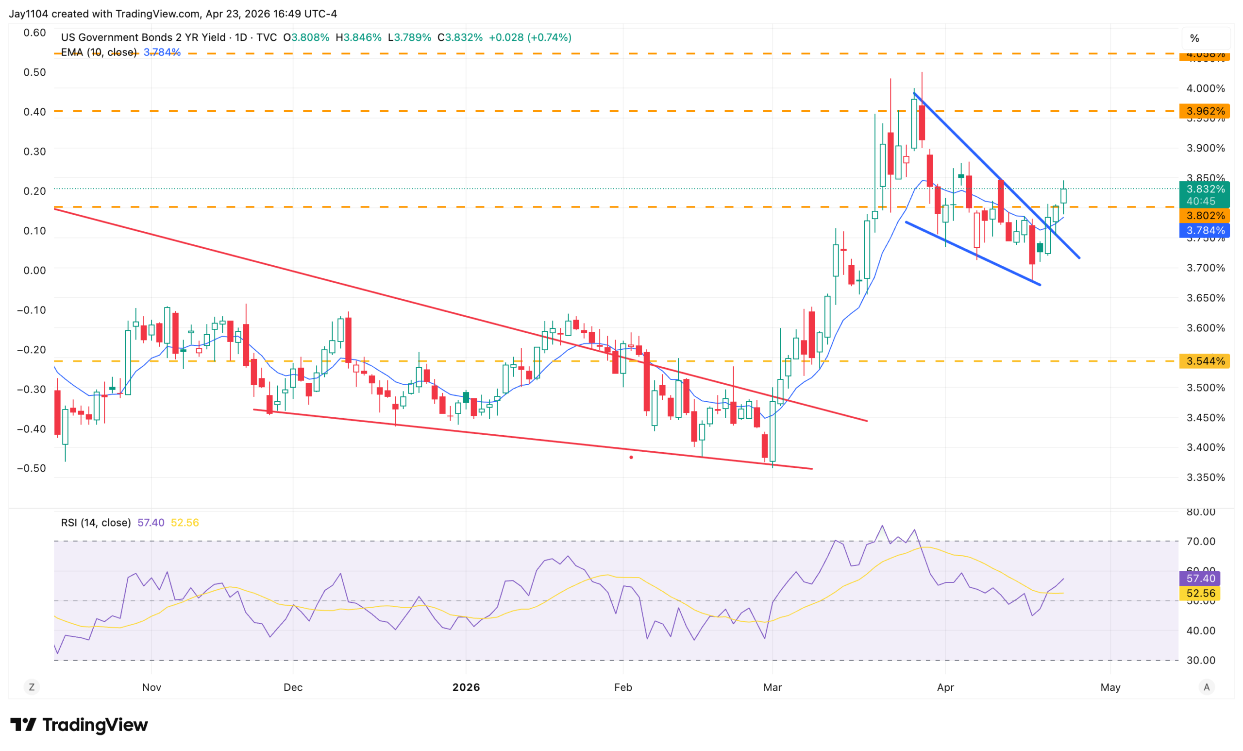 The same can be said of the US 2-year rate, which rose by nearly 3 bps on the day and moved above the 3.8% resistance level. If oil continues to rise and inflation expectations move higher as well, it would suggest that 2-year rates could begin to head back toward 4%.