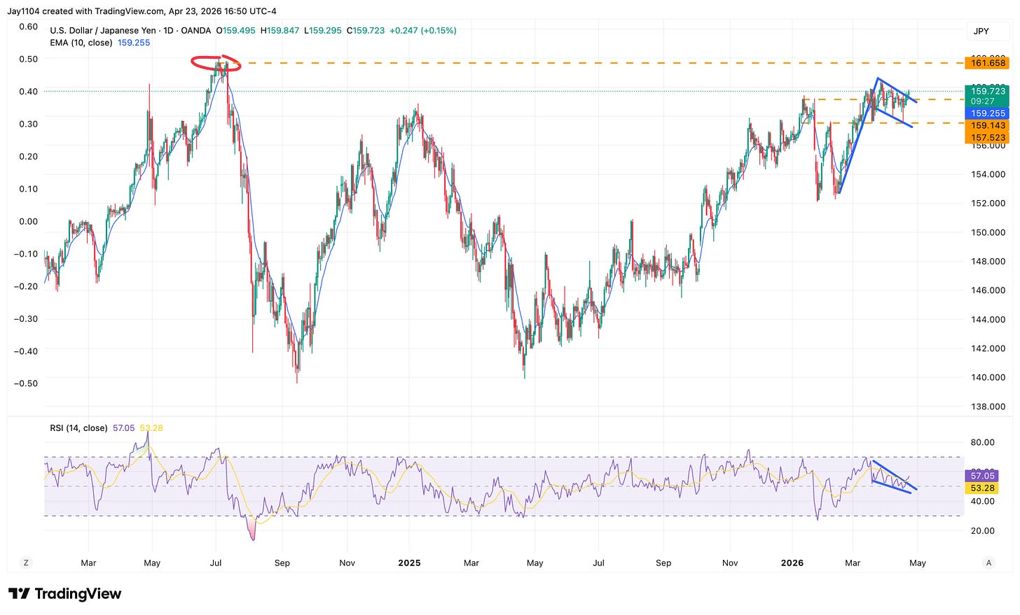 It is a similar setup for USD/JPY, which also appears to be breaking out of a bull flag. If that holds, the pair could move back through the prior highs around 162 seen in 2024.