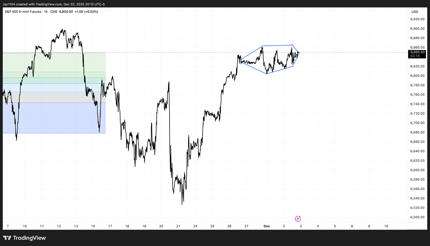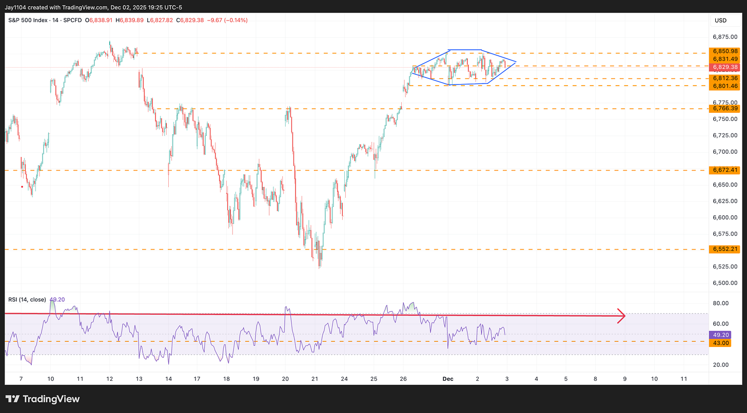Stocks stalled on December 2nd, with the S&P 500 ending the day essentially unchanged, rising just 25 basis points. The index appears to be stuck between 6,850 and 6,800, and at this point, we’re simply waiting for a clear sense of direction.