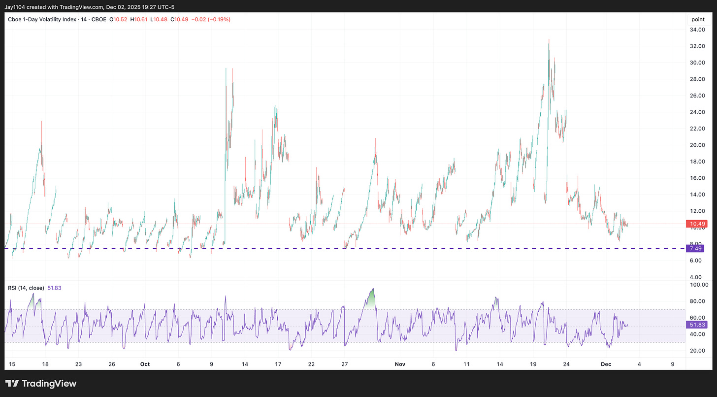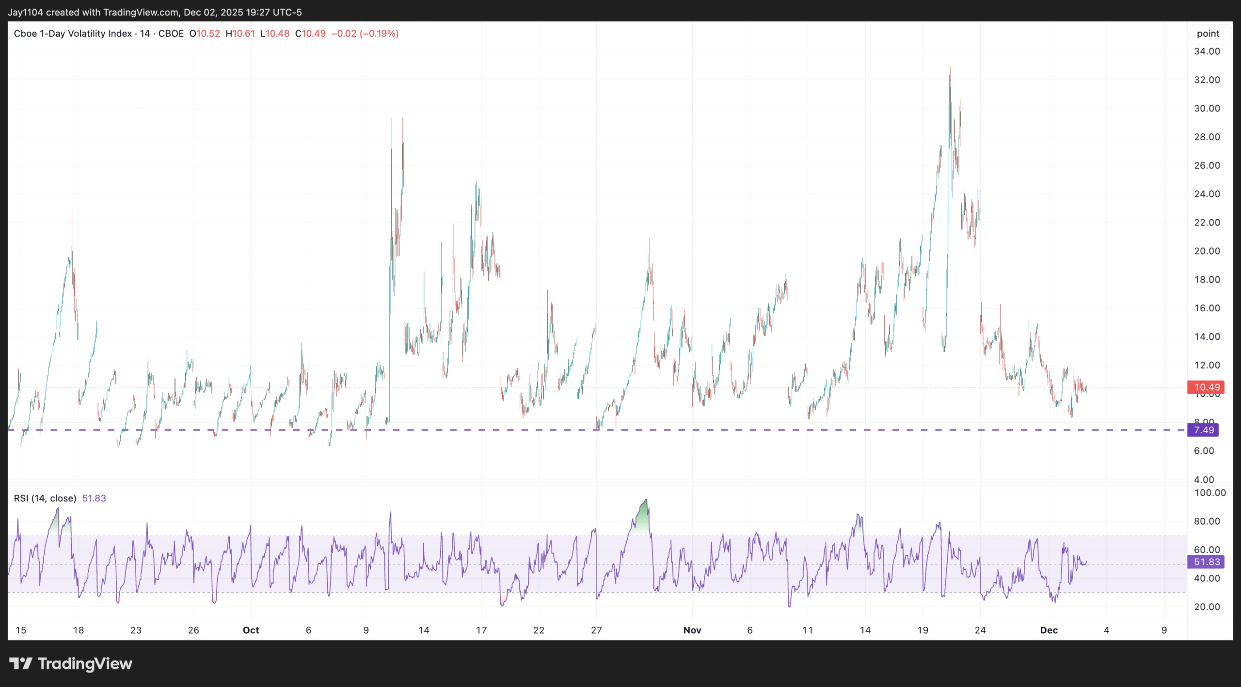 VIX 1-Day: A one-day measure of expected S&P 500 volatility derived from options prices.