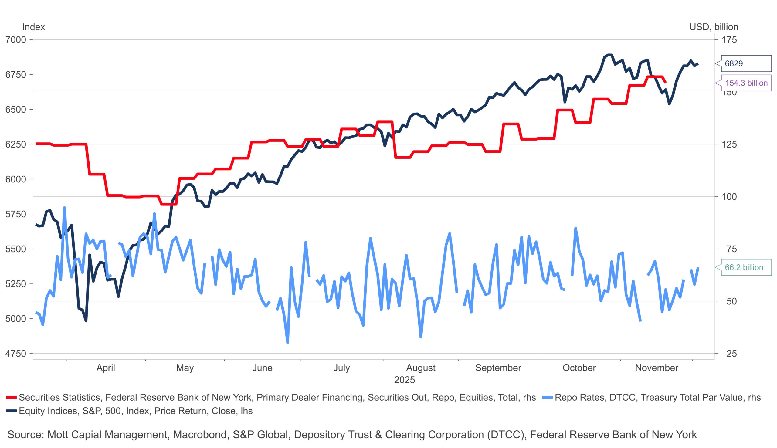 Additionally, we saw Treasury volumes rise today at DTCC, and one working theory I am still sorting through is that when Treasury repo volume increases, the availability of equity repo tends to fall. When equity repo availability falls, stocks usually weaken. Therefore, if this relationship is correct, rising Treasury activity should coincide with lower stock prices.