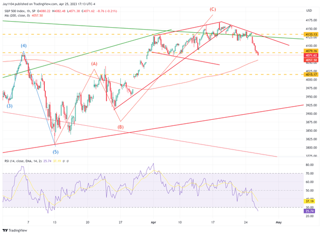 Today, the stock market experienced a significant drop, as the S&P 500 fell by almost 1.6%. This is concerning, as the index dipped below the support level of 4,080 and closed at 4,071. Normally, this would indicate a bearish breakdown. However, Microsoft's positive results caused its stock to rise by more than 8%, and as a result, there is a possibility that the S&P 500 will rebound and trade above 4,080 tomorrow as the S&P 500 futures jump.