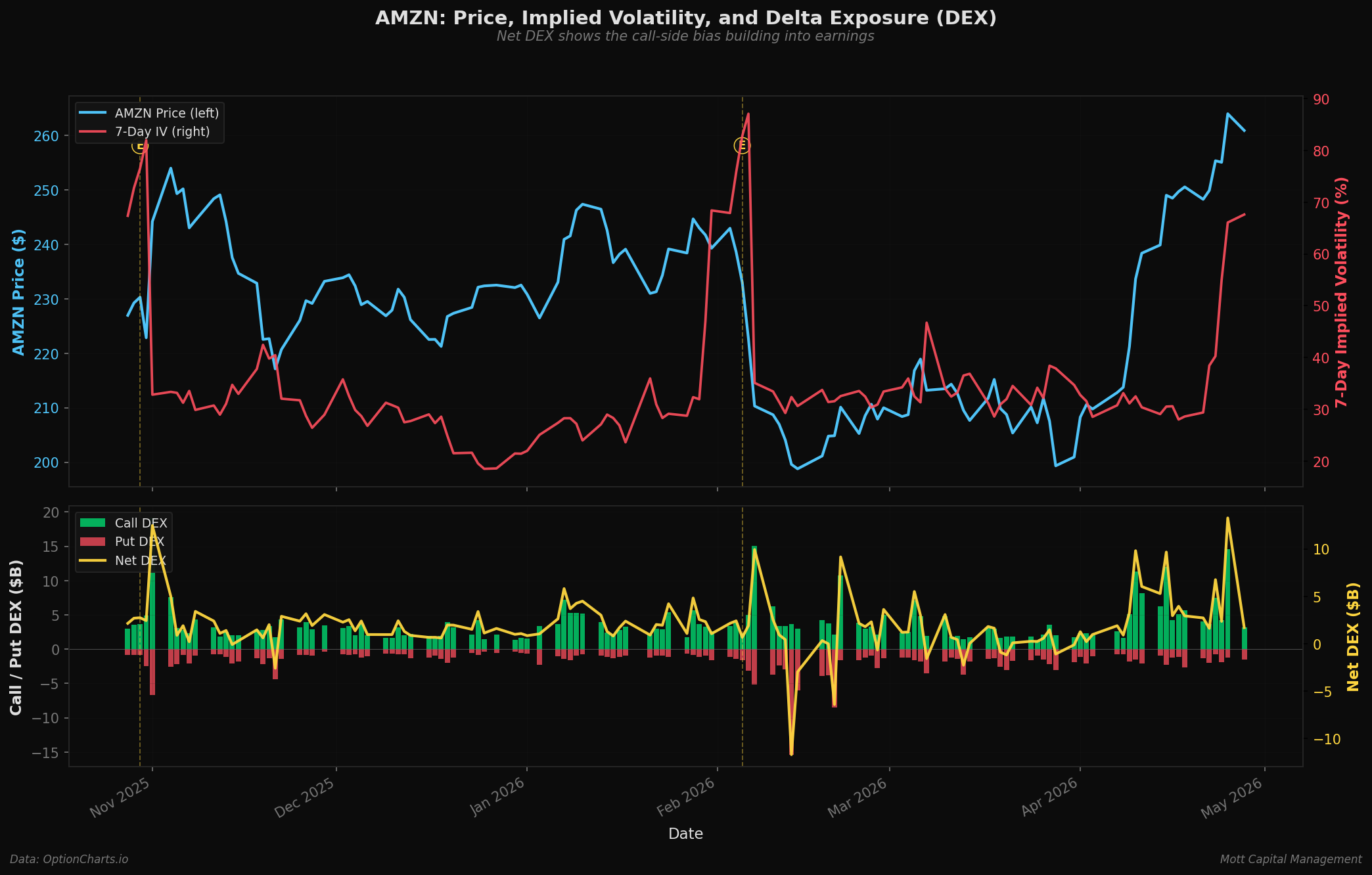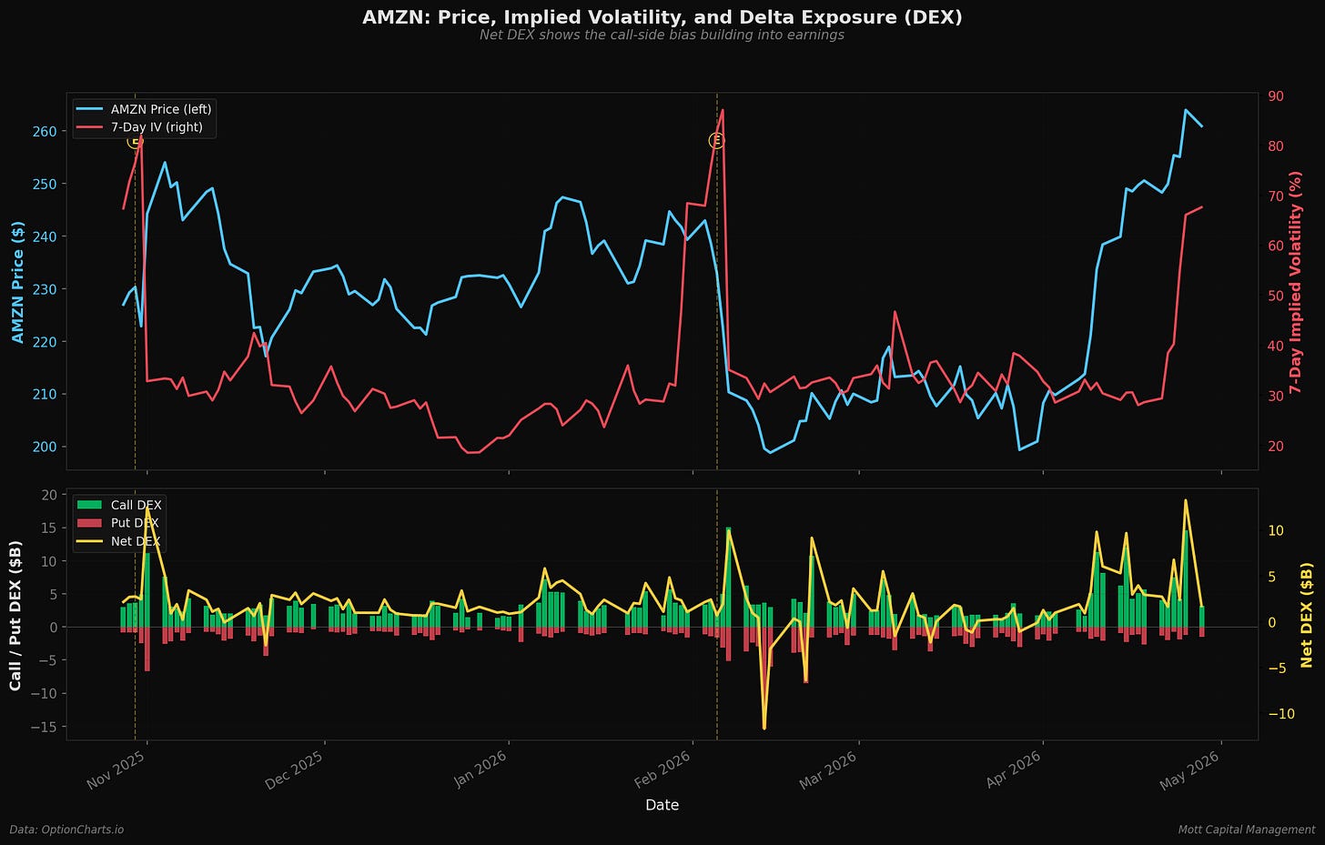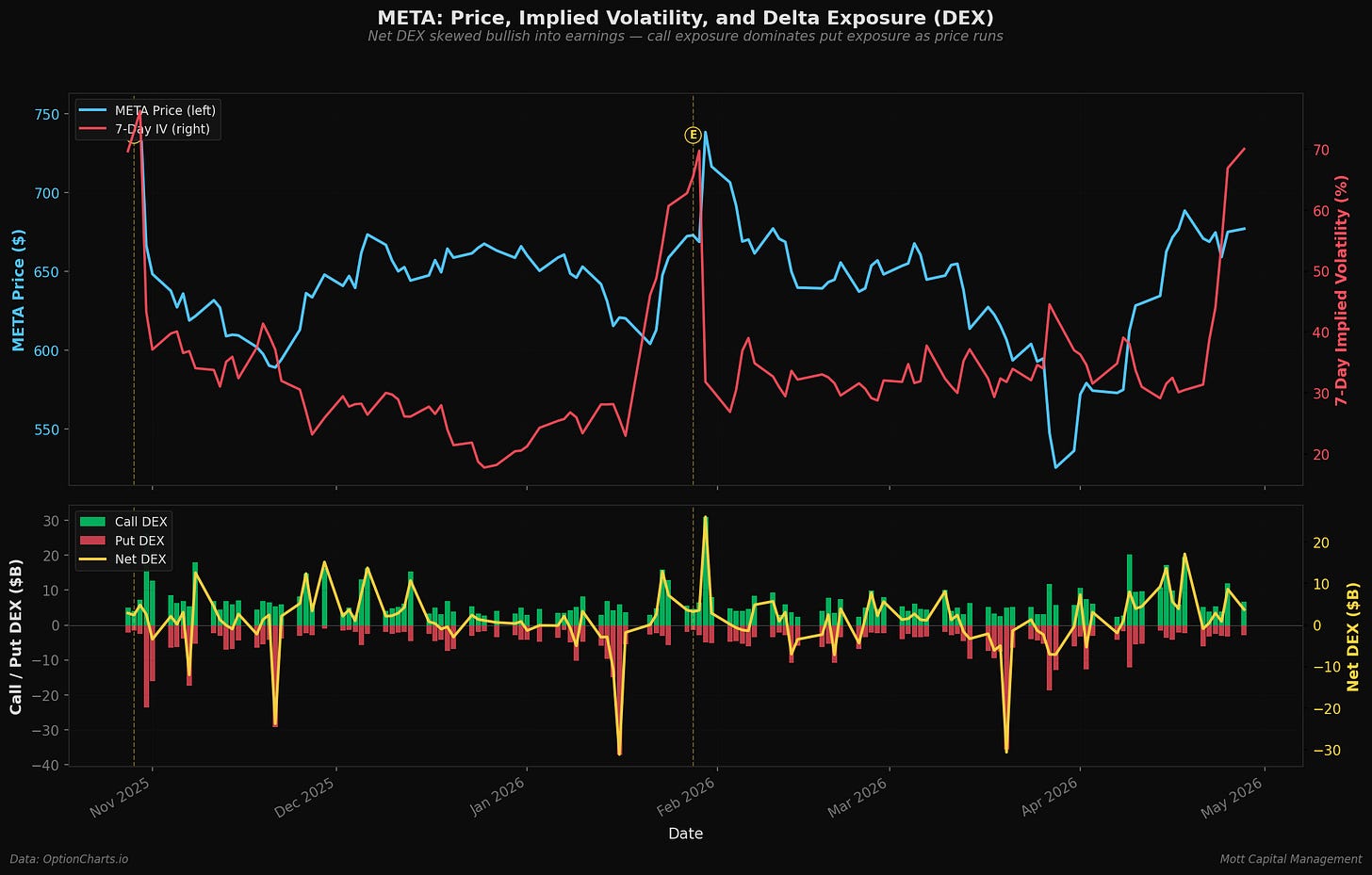However, given the rise in stocks and the positive net delta values—which suggest call-driven activity—it is hard to argue this is being driven by fear, especially when looking at Meta. If anything, the setup points to positioning rather than protection.