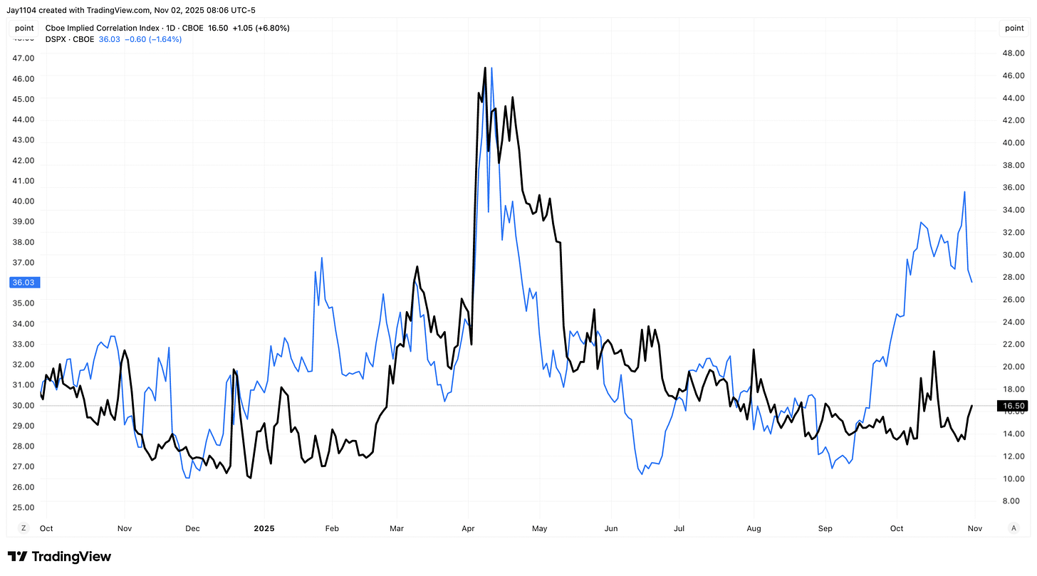 These conditions are likely to keep unwinding, with the DSPX continuing to decline and the 3-month implied correlation index likely to keep rising.