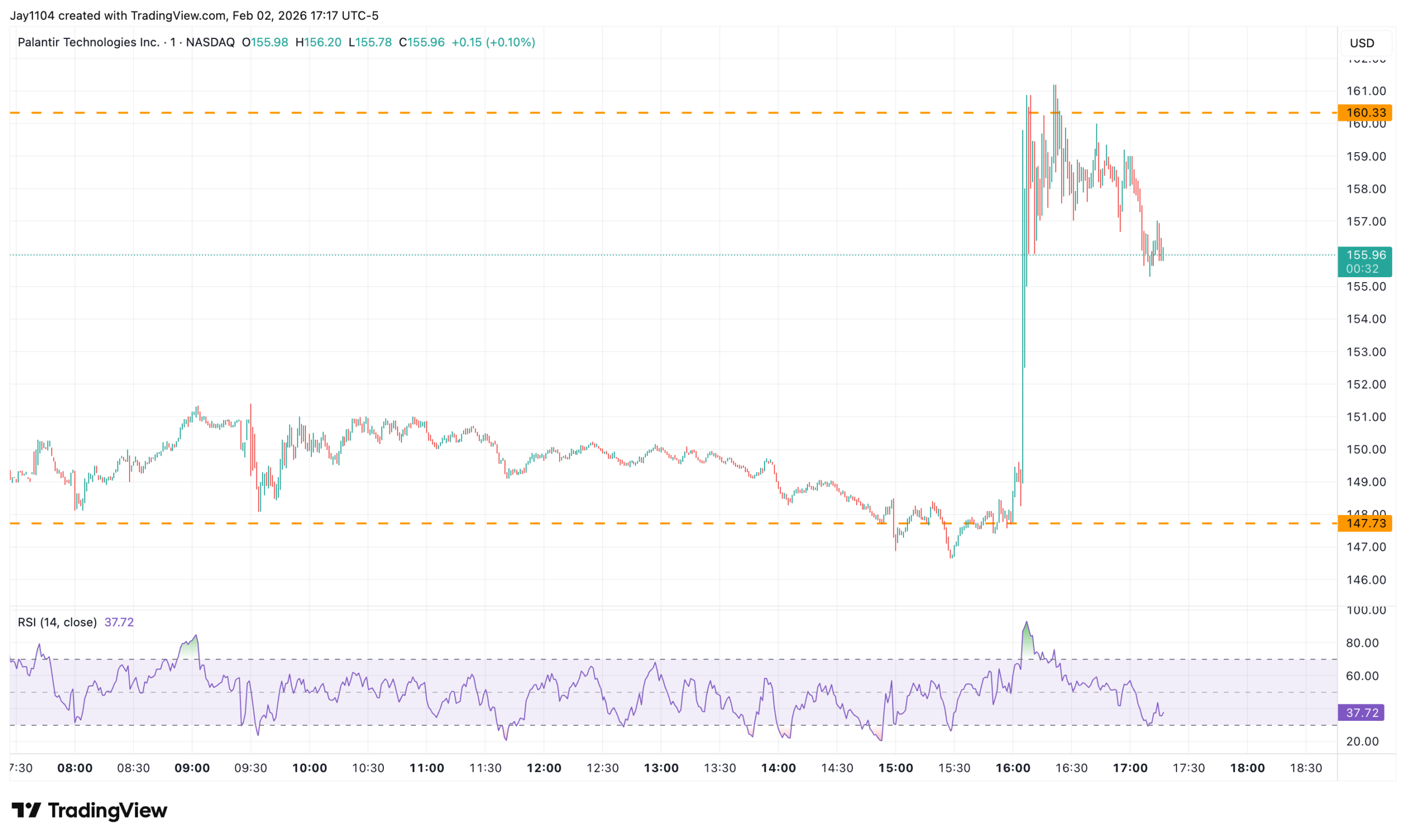 As noted yesterday, Palantir’s key resistance level from an options positioning standpoint was $160, and that is where the stock stalled in after-hours trading. If the stock cannot clear that level, it would not be surprising to see the gains reversed, with shares moving sharply lower in tomorrow’s trading session.