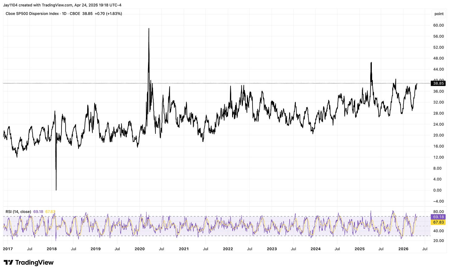 That combination has mattered in the past. In both October and February, dispersion peaked into these earnings clusters and reversed sharply afterward.