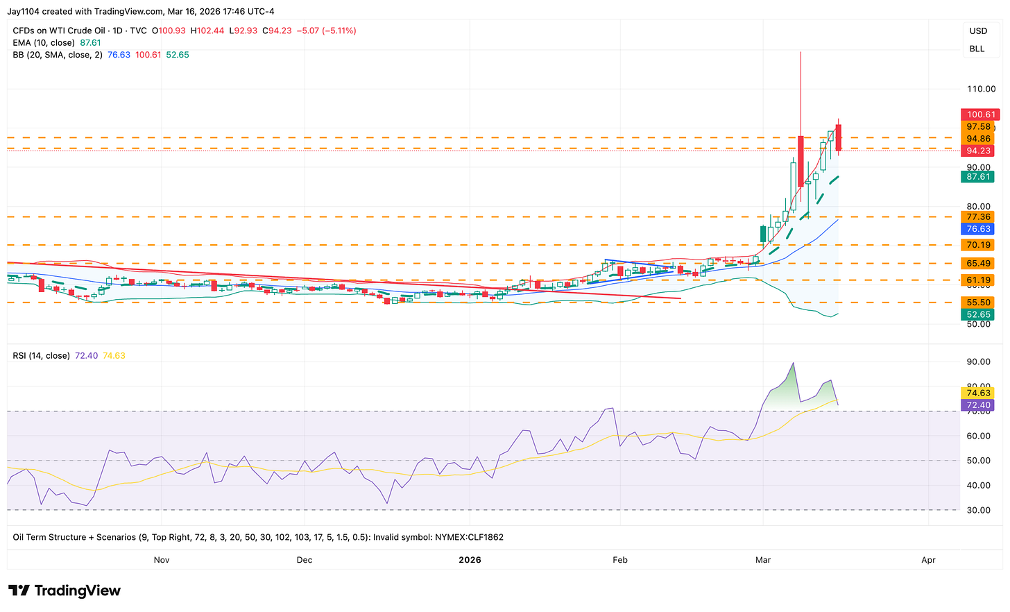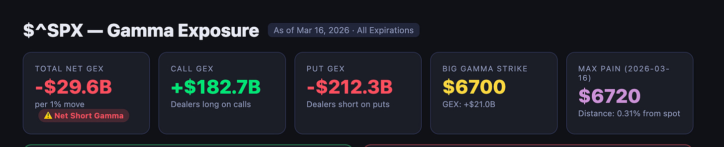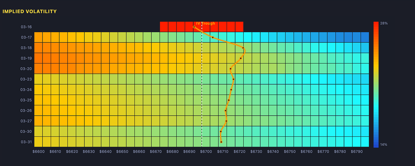 As for what happens from here, the path is not an easy one. The big outlier, of course, is the price of oil, but assuming the war does not take an unexpected turn for better or worse and oil remains in the $90s, S&P 500 implied volatility should naturally drift higher into the Fed meeting on Wednesday.