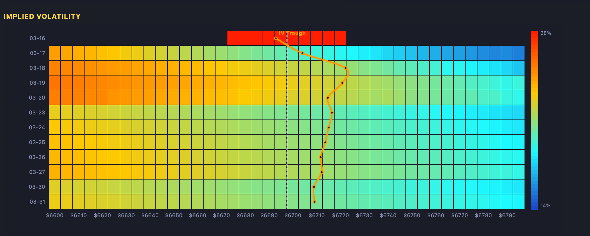 Implied Volatility (IV): The market’s forecast of a security’s future volatility derived from option prices.