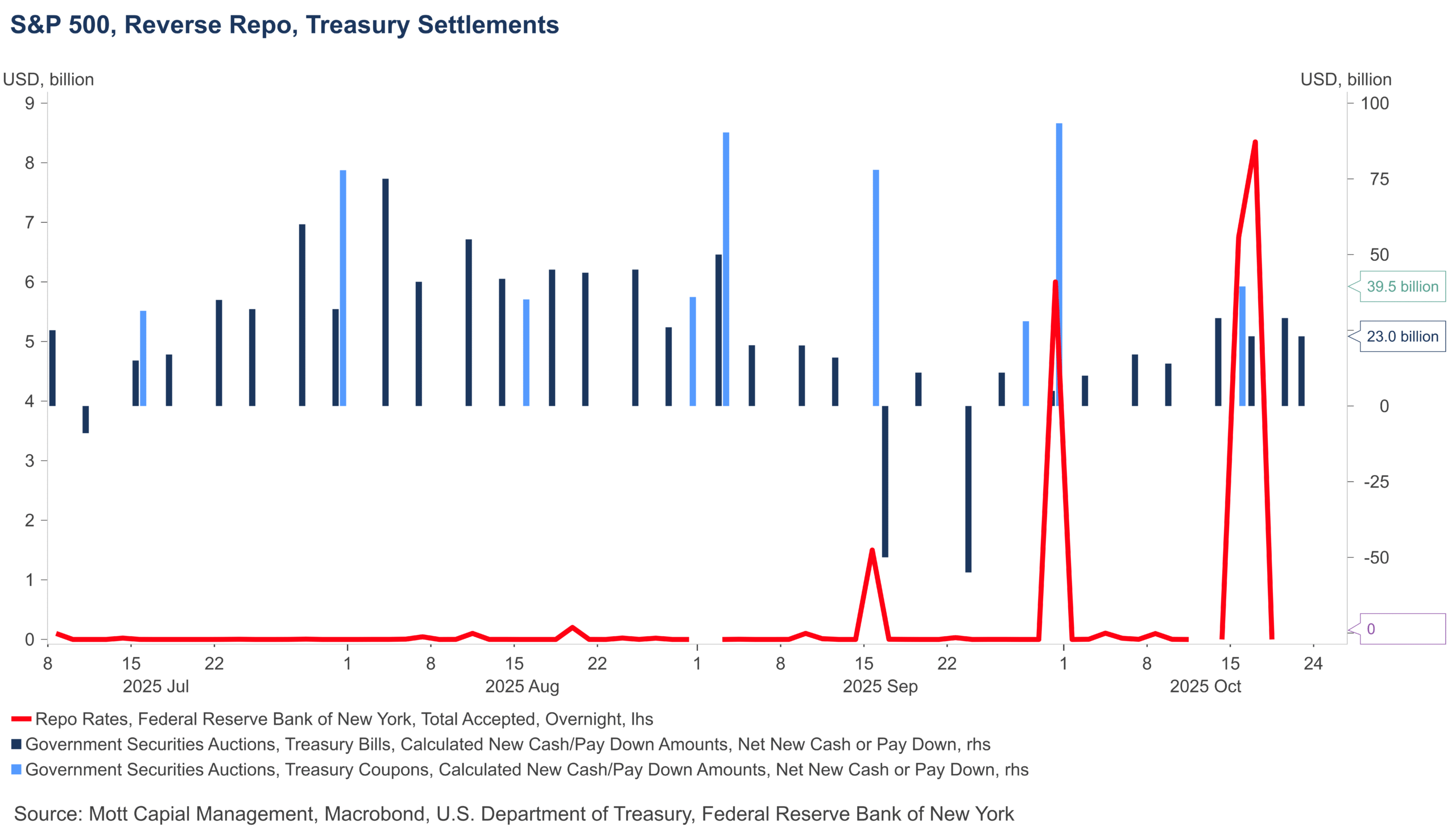 This week will also include two Treasury settlement dates, on October 21 and 23, which means liquidity will likely tighten again. As a result, usage of the Standing Repo Facility could pick up on both Tuesday and Thursday.
