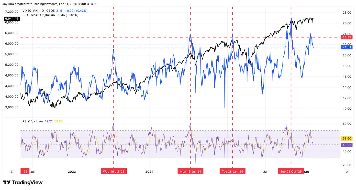 While things may appear calm on the surface, there is still significant change beneath. This remains a warning signal. As we move through the rest of earnings season, implied volatility on individual constituents should continue to decline, as it typically does. As that happens, the spread will likely narrow. That process could involve unwinding positioning, which may result in a sharp move to the downside. Again, none of this is new to readers of this commentary or members of the service.