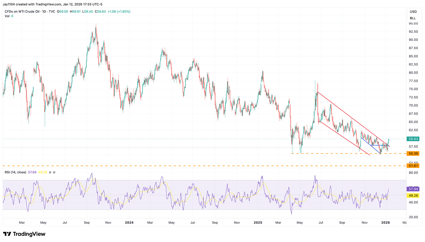That could be very important if the move in oil above the downtrend actually holds and prices begin to work their way back into the $60s. For now, $55 appears to be the floor for oil, and it remains one of the few commodities that has not meaningfully moved higher. It is certainly worth watching for a potential upside move.
