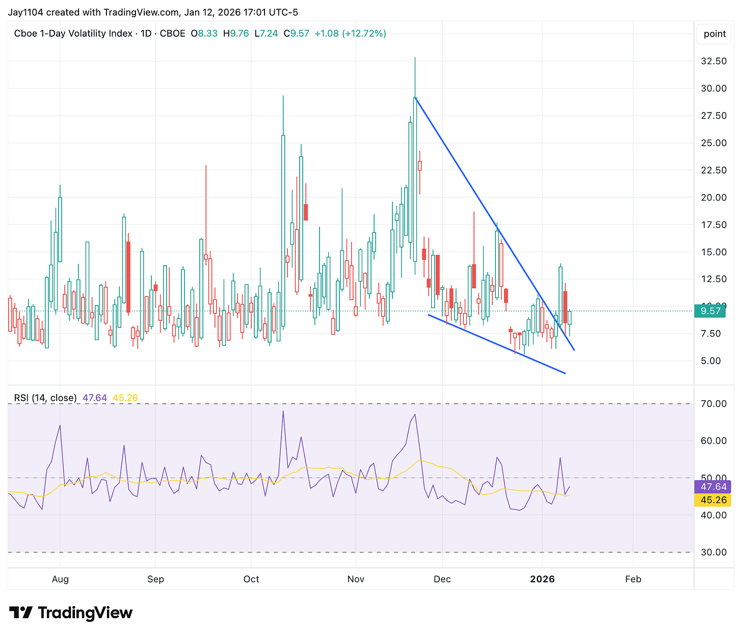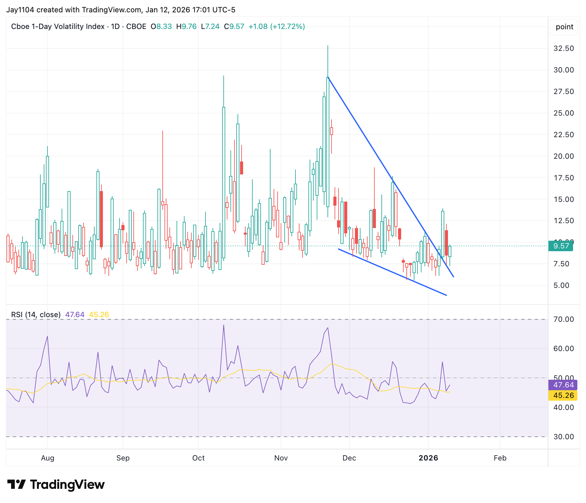 The VIX 1-Day closed below 10 today, so if you are expecting a big move higher following the CPI report, it is unlikely to come from an implied volatility perspective, at least initially. Any meaningful move would need to be driven by real buying rather than volatility expansion. That said, volatility can always be pushed higher overnight to set up the CPI crush that everyone has grown to know and love.
