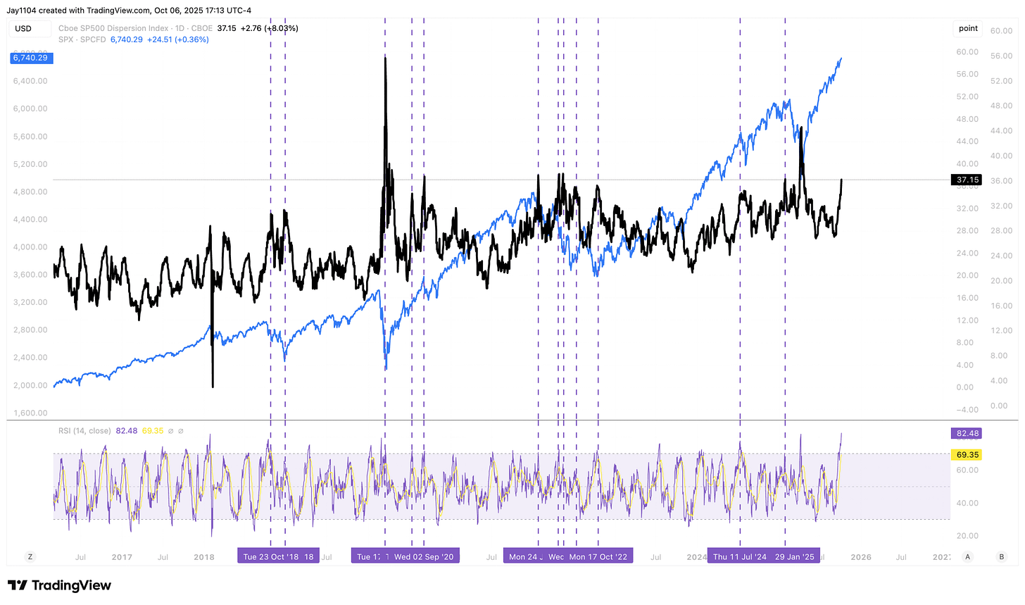 Dispersion (DSPX) – A measure of how much individual stock returns differ from the broader index return; higher dispersion indicates less correlation among stocks.