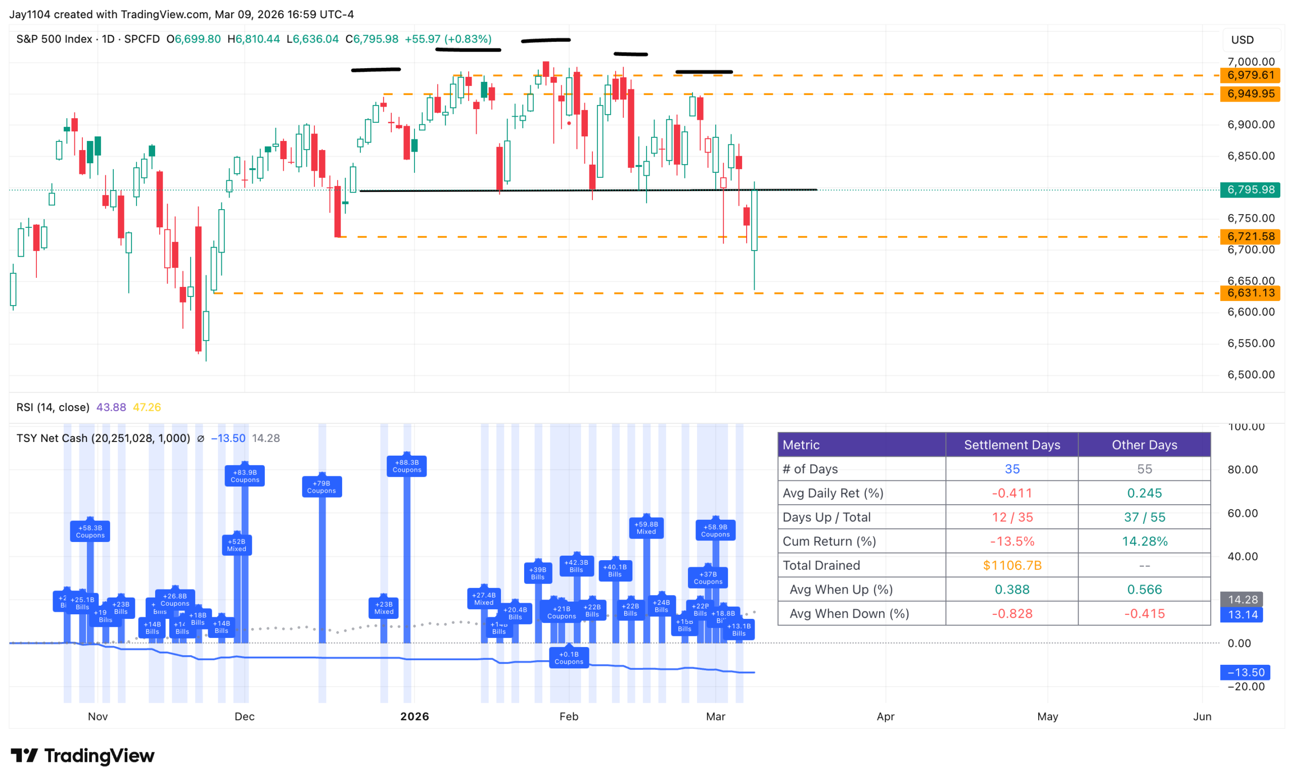 The primary problem from a bullish standpoint is that tomorrow is a settlement date of roughly $15 billion in T-bills. The stats suggest there is about a one-third chance the market rises tomorrow, while two-thirds of the time it is down on settlement dates.