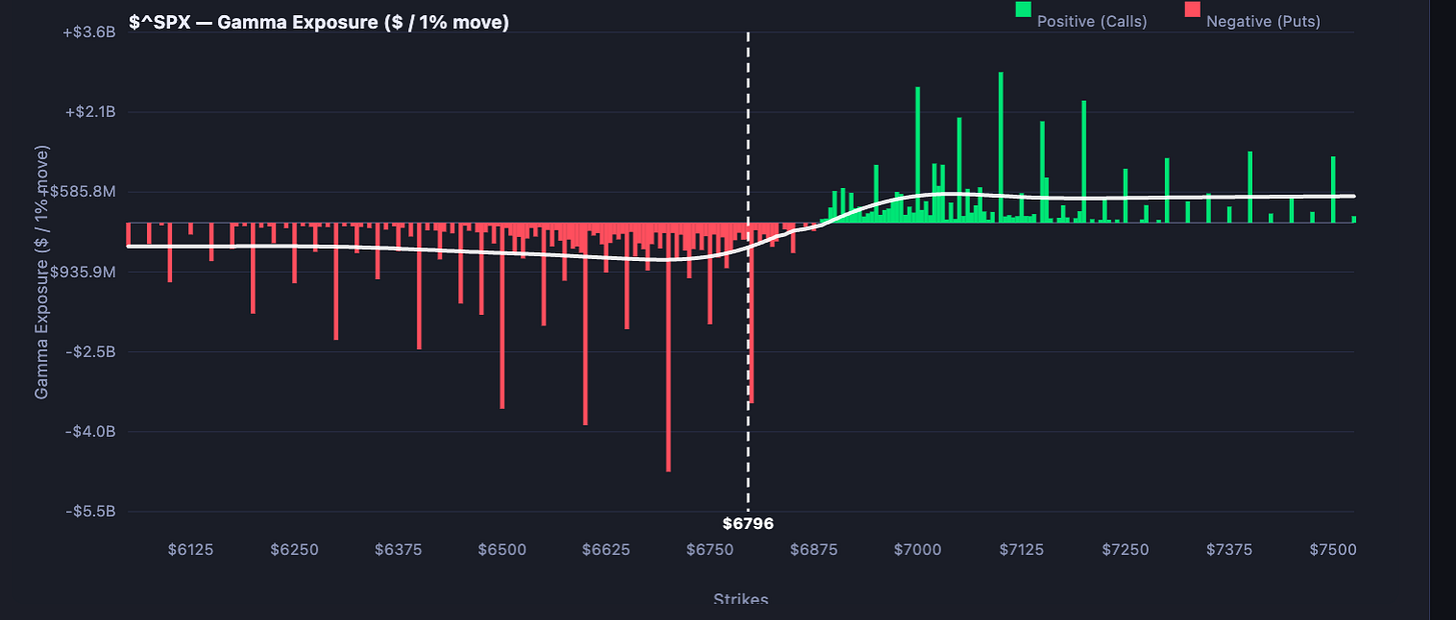 From both an options and technical perspective, 6,800 is again an important level because once you get over it, the index could easily return to 6,900, which is the zero gamma level.