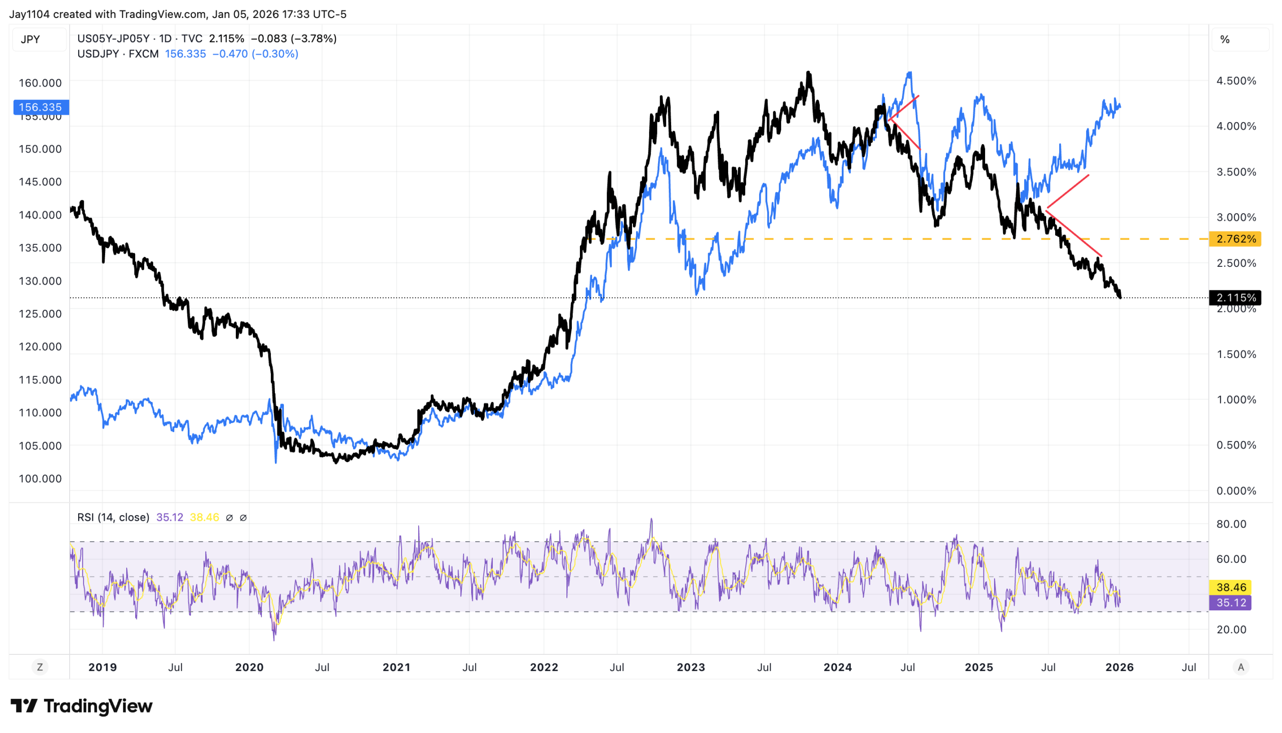 Meanwhile, the weaker ISM report led to the spread between U.S. Treasuries and JGBs narrowing further, with the 5-year spread now at 2.11%, its lowest level since March 2022. Yet USD/JPY continues to hold near the 155 area.
