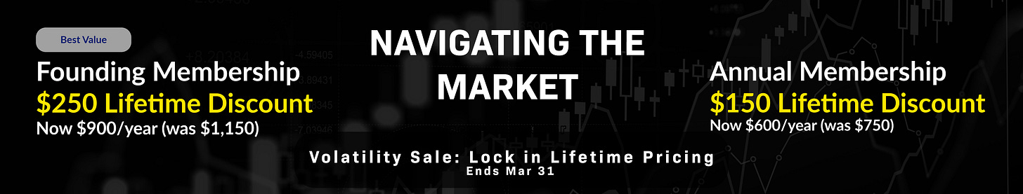 Navigating the Market is just $85 per month or $750 $600 per year — for daily market analysis, videos, transcripts, and a glossary. Also, you can leave comments and questions in the article and on chat.