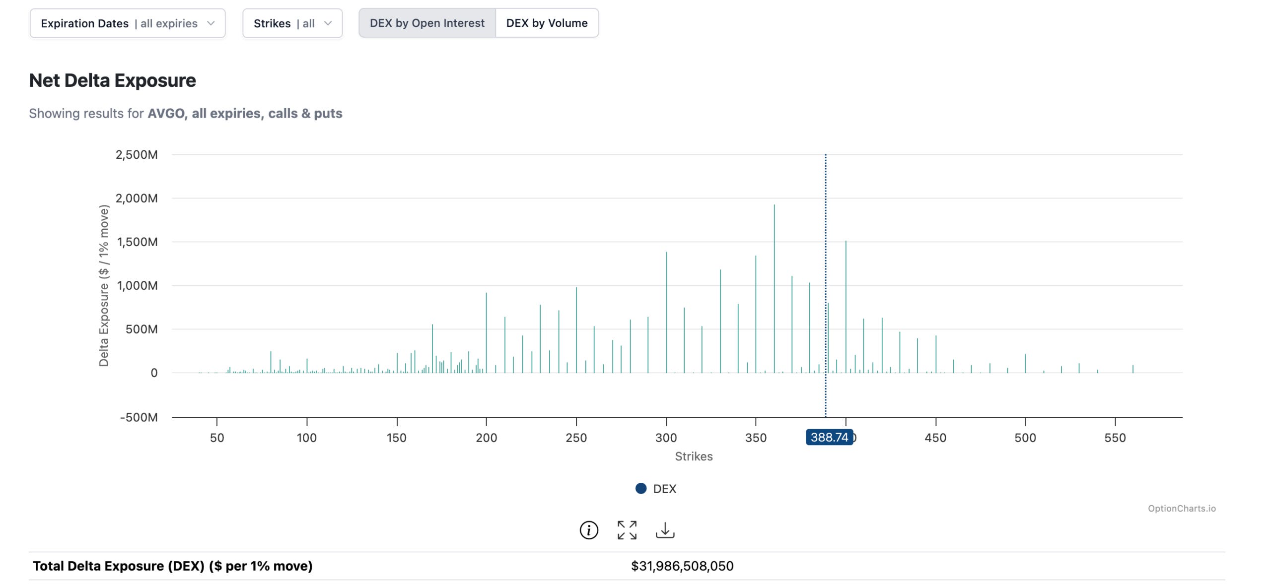 Open Interest: The total number of outstanding option contracts that have not yet been closed or exercised.