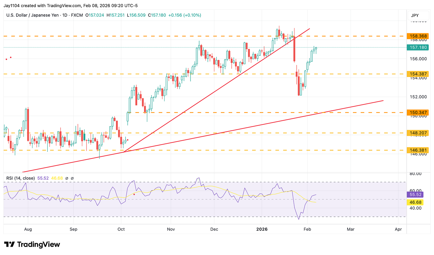It looks like the LDP will win by a landslide in Japan’s weekend election, and that probably means PM Sanae Takaichi will get to “run it hot” on the economy. The weekend USD/JPY is already trading just below 158, and the win probably means it will weaken further. At this point, the BOJ is dragging its feet, and the government is running really loose fiscal policy, so it makes total sense to see the USD/JPY rise further, and the threat of intervention really seems out of place, in my opinion. But it is clear they are worried about the 160 level.
